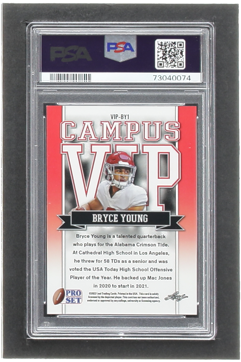 Bryce Young 2022 Leaf Pro Set Draft Metal Campus VIP Purple Wave #VIPBY1 RC (PSA 10)