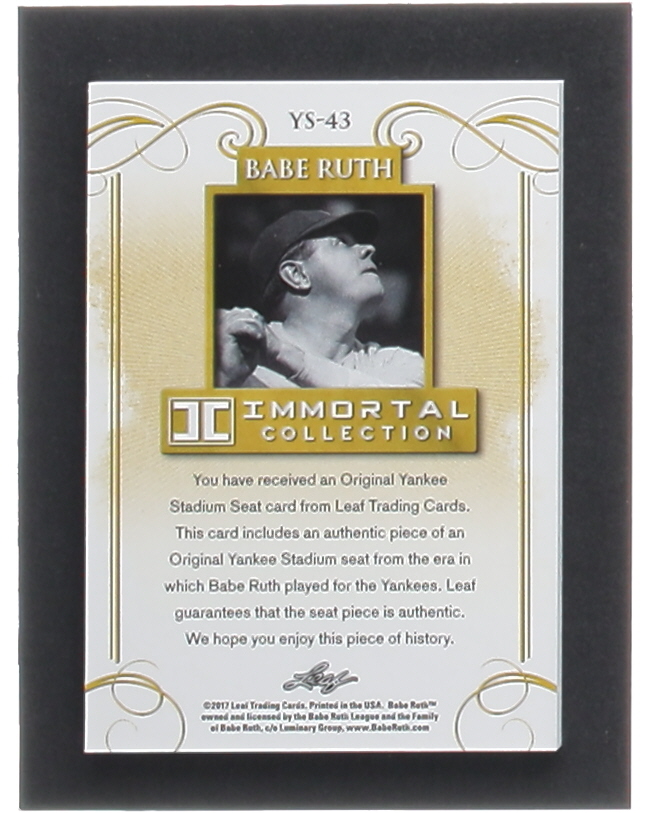 Babe Ruth 2017 Leaf Babe Ruth Immortal Collection Yankee Stadium Seat #YS43 #24/50