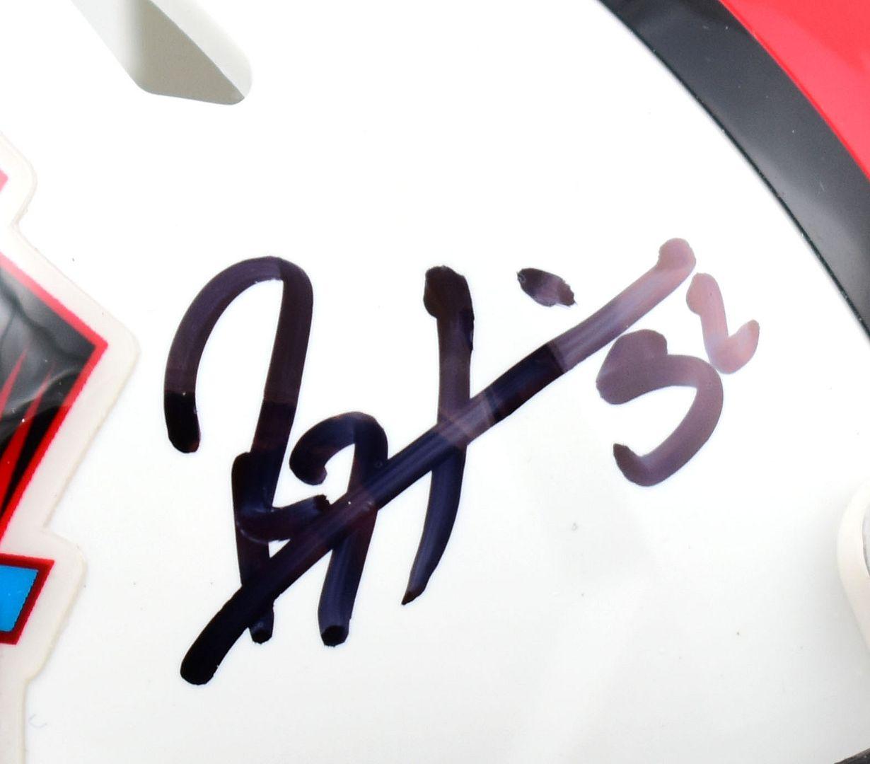 Riddell Hall of Fame logo Speed mini helmet. Hand-signed by Ray Lewis (Baltimore Ravens, HOF) and Deion Sanders (Dallas Cowboys, HOF).