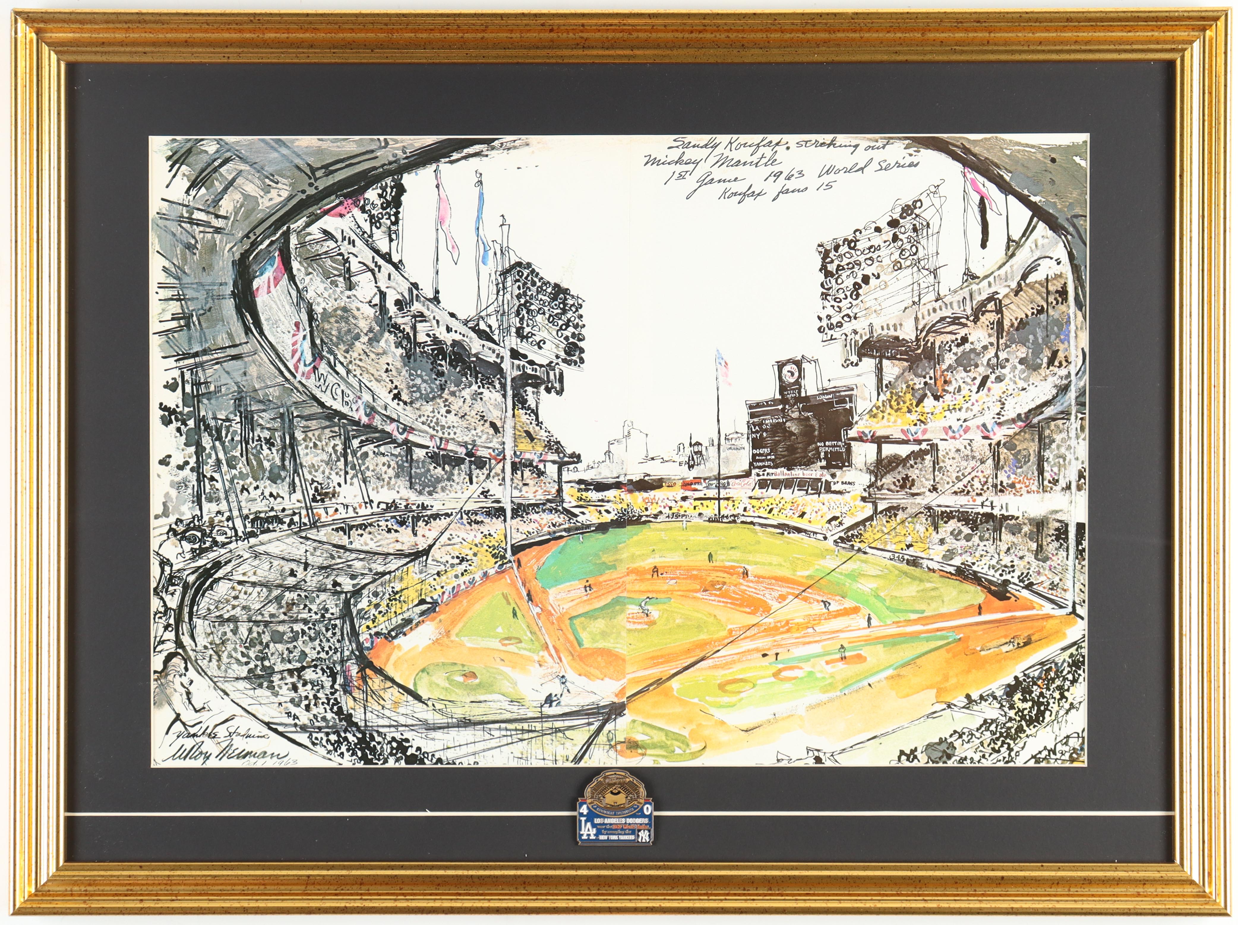 LeRoy Neiman "Sandy Koufax vs. Mickey Mantle" Custom Framed Print Display with 1963 World Series Pin