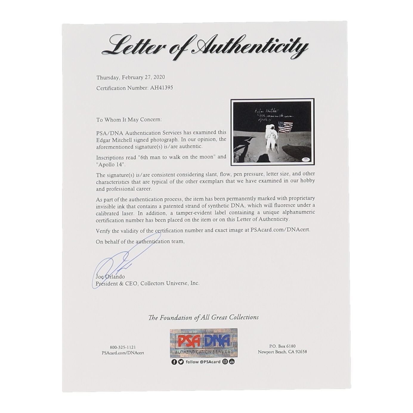 Edgar Mitchell Signed 8x10 Photo Inscribed "Apollo 14" & "6th Man on the Moon" (PSA)