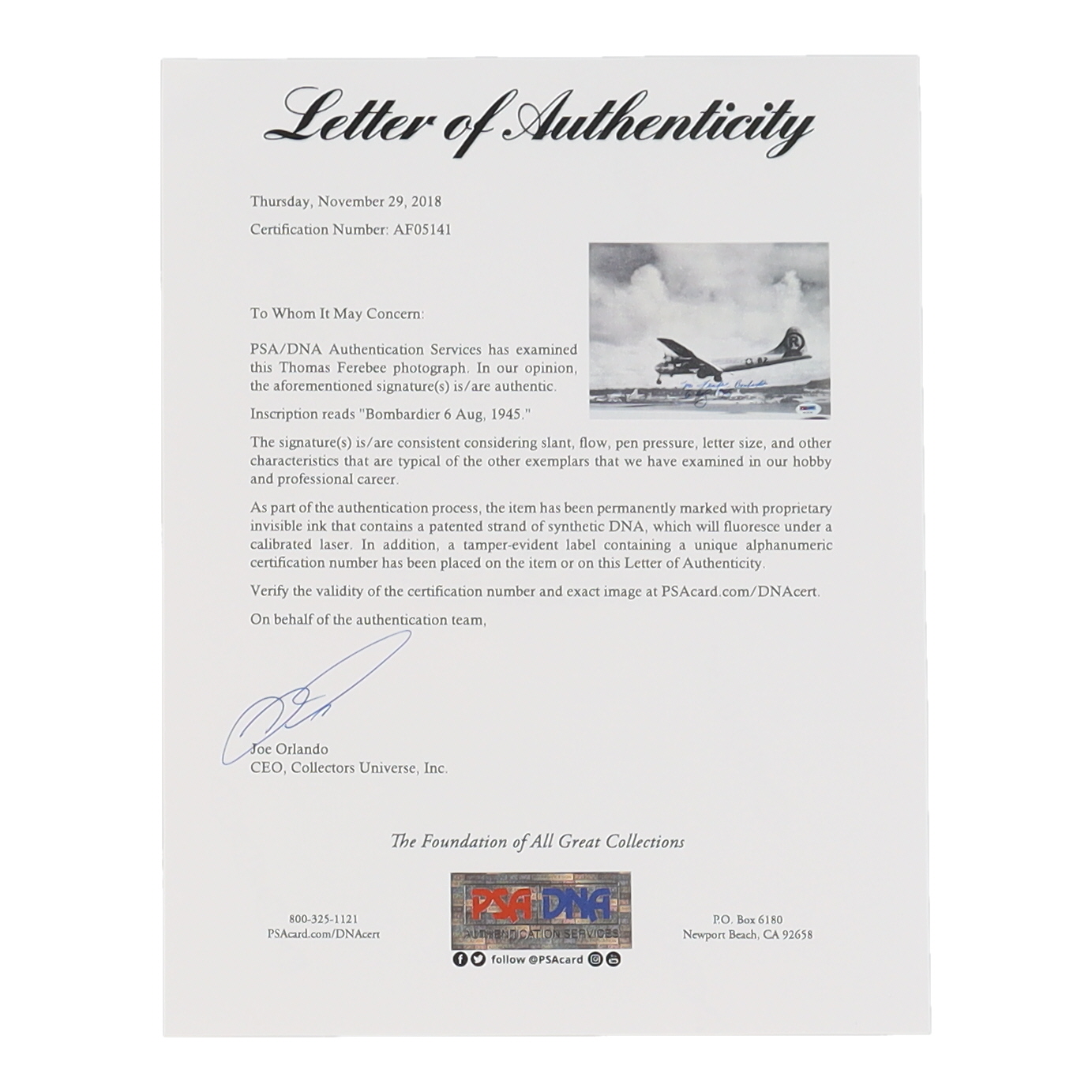Thomas Ferebee Signed 8x10 Photo Inscribed "6 Aug, 1945" (PSA)