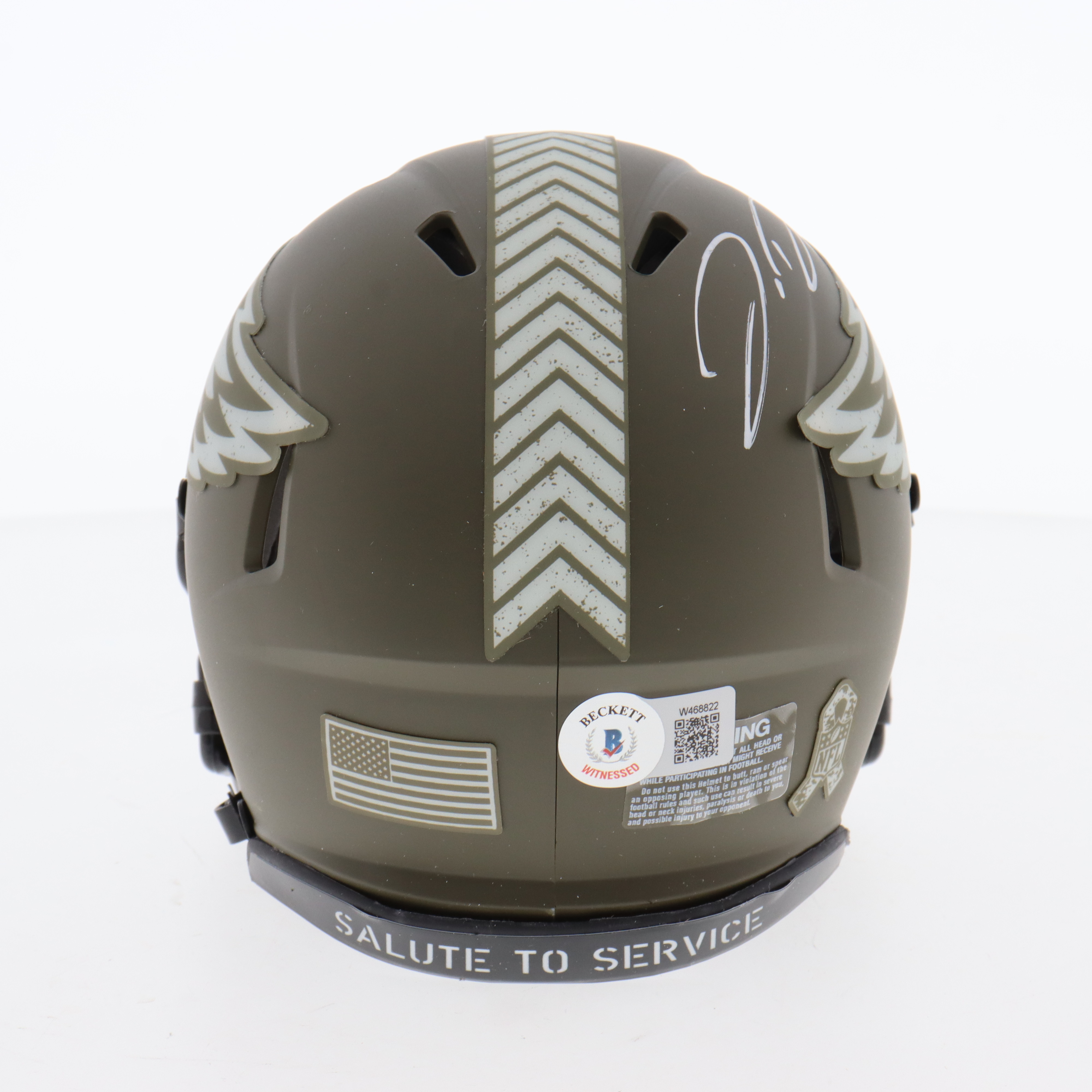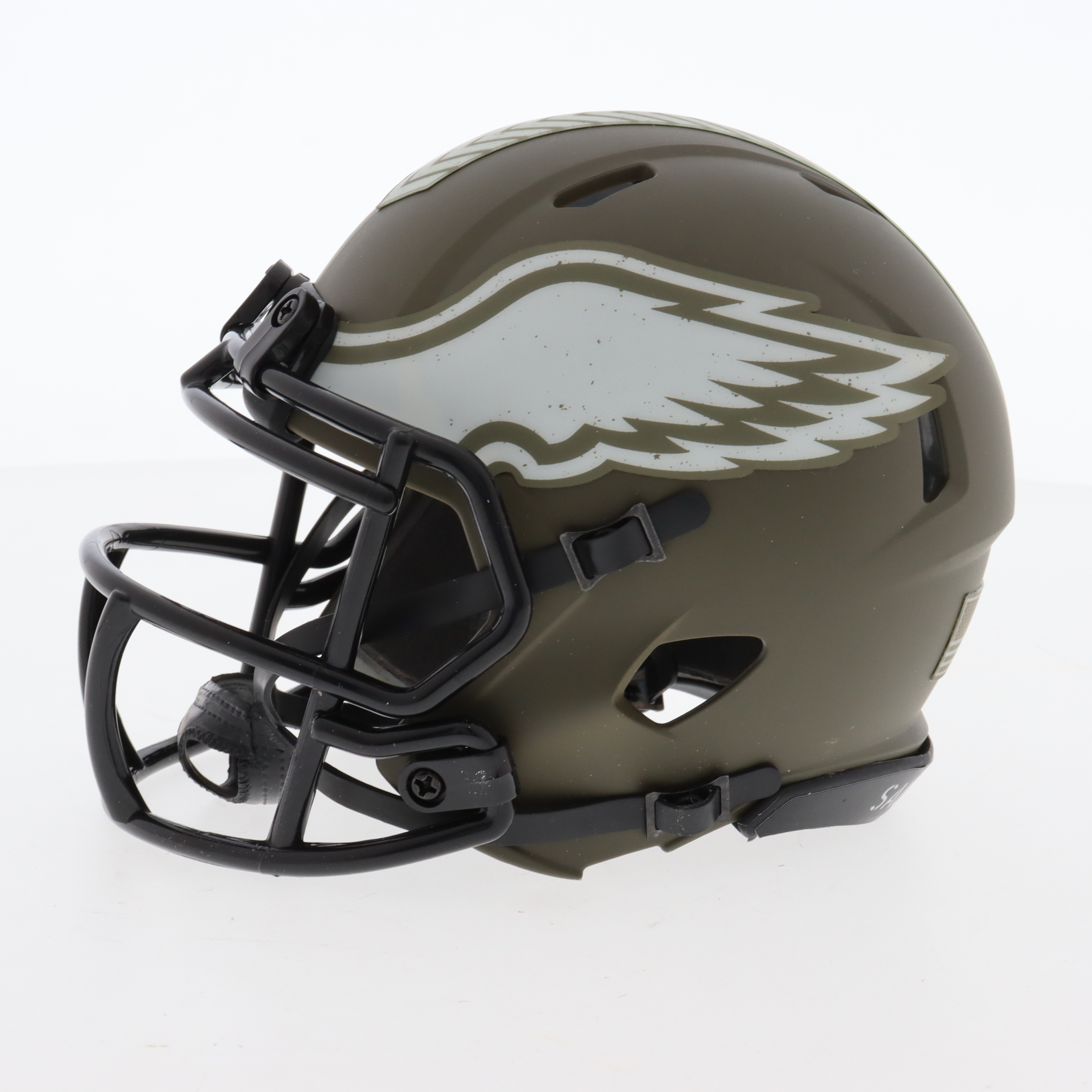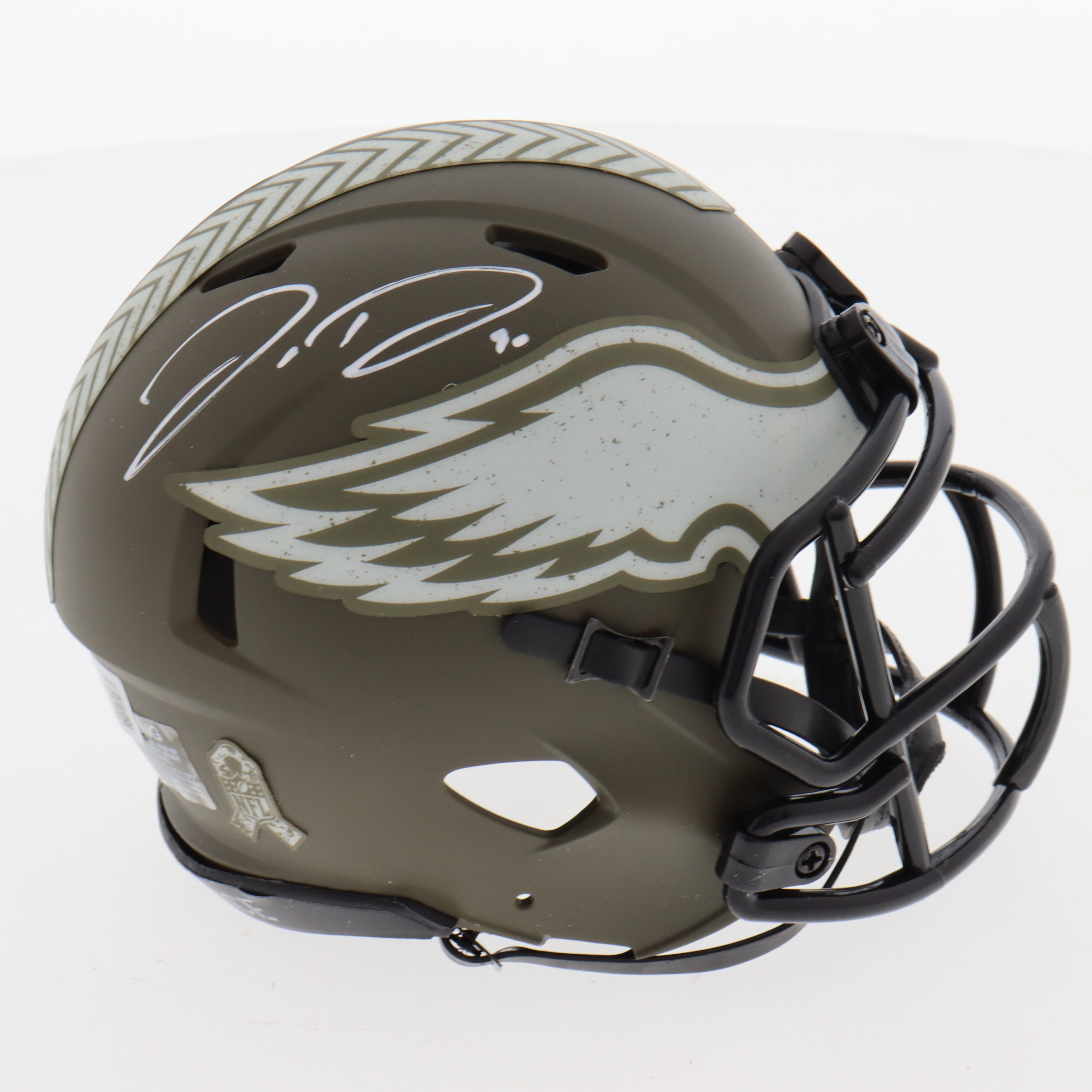 Riddell Philadelphia Eagles Salute To Service Alternate Speed mini helmet. Hand-signed by Jordan Davis.