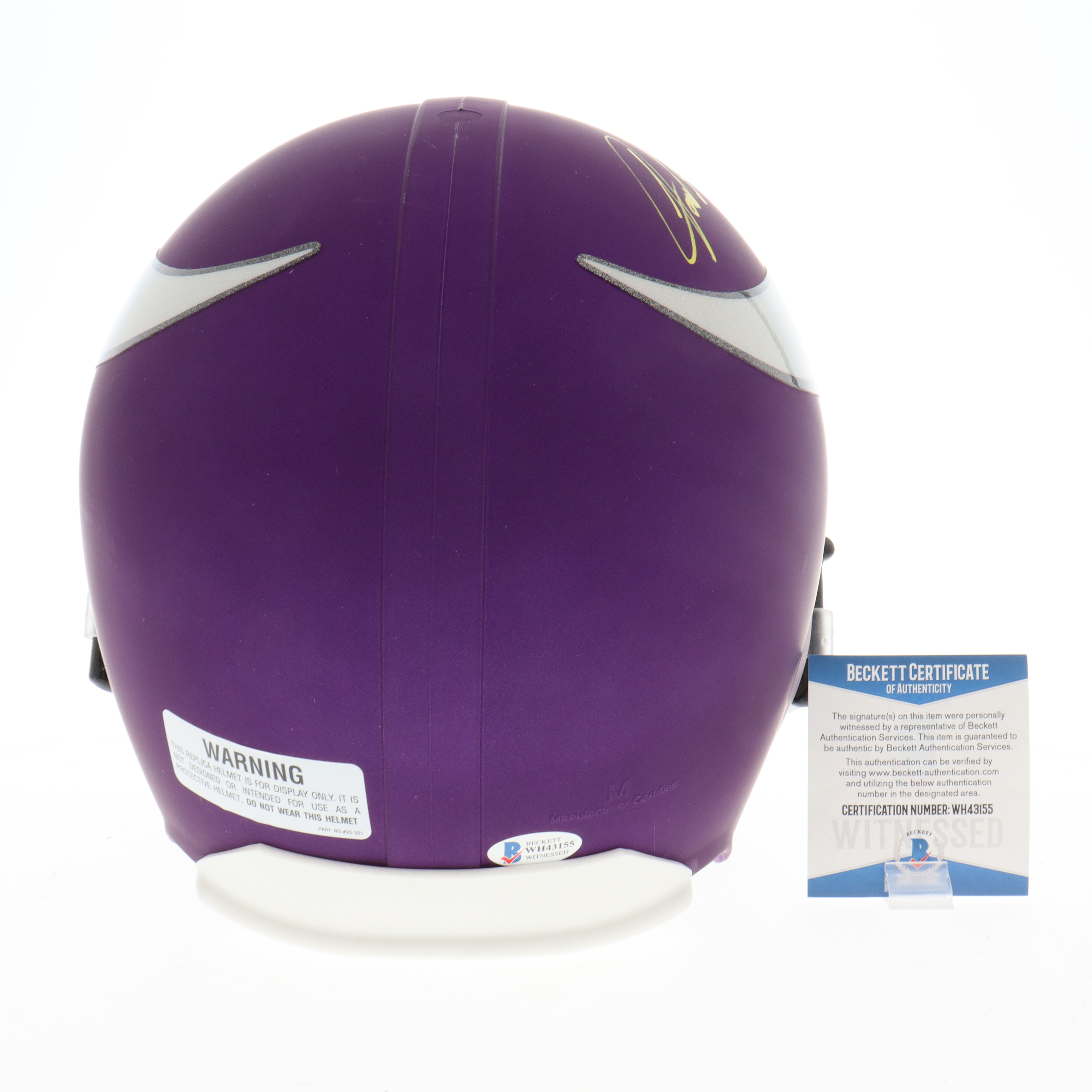 Riddell Minnesota Vikings full-size replica helmet. Hand-signed by Jared Allen.