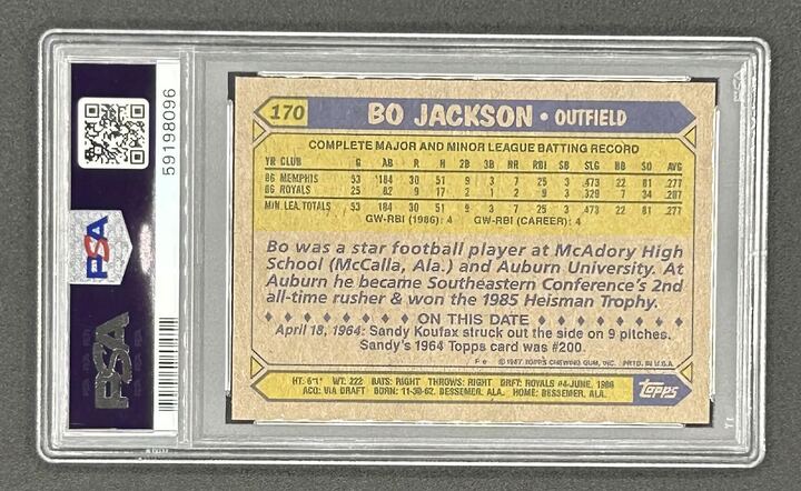 Bo Jackson 1987 Topps #170 RC (PSA 9)