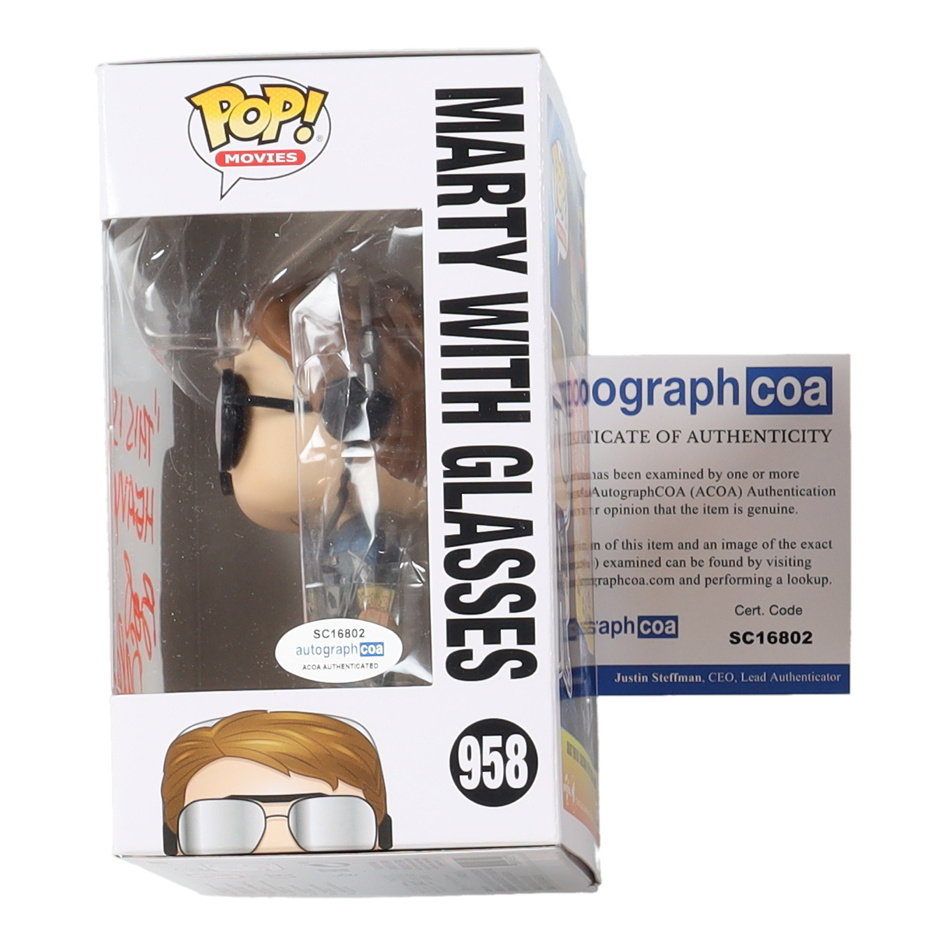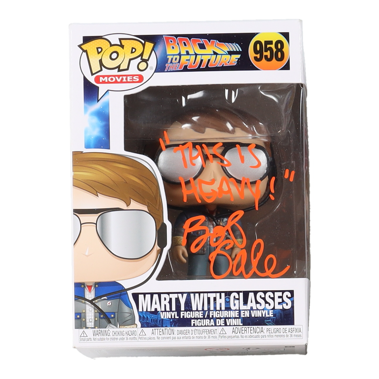 Bob Gale Signed "Back to the Future" #958 Marty With Glasses Funko Pop! Vinyl Figure Inscribed "This Is Heavy!" (AutographCOA)