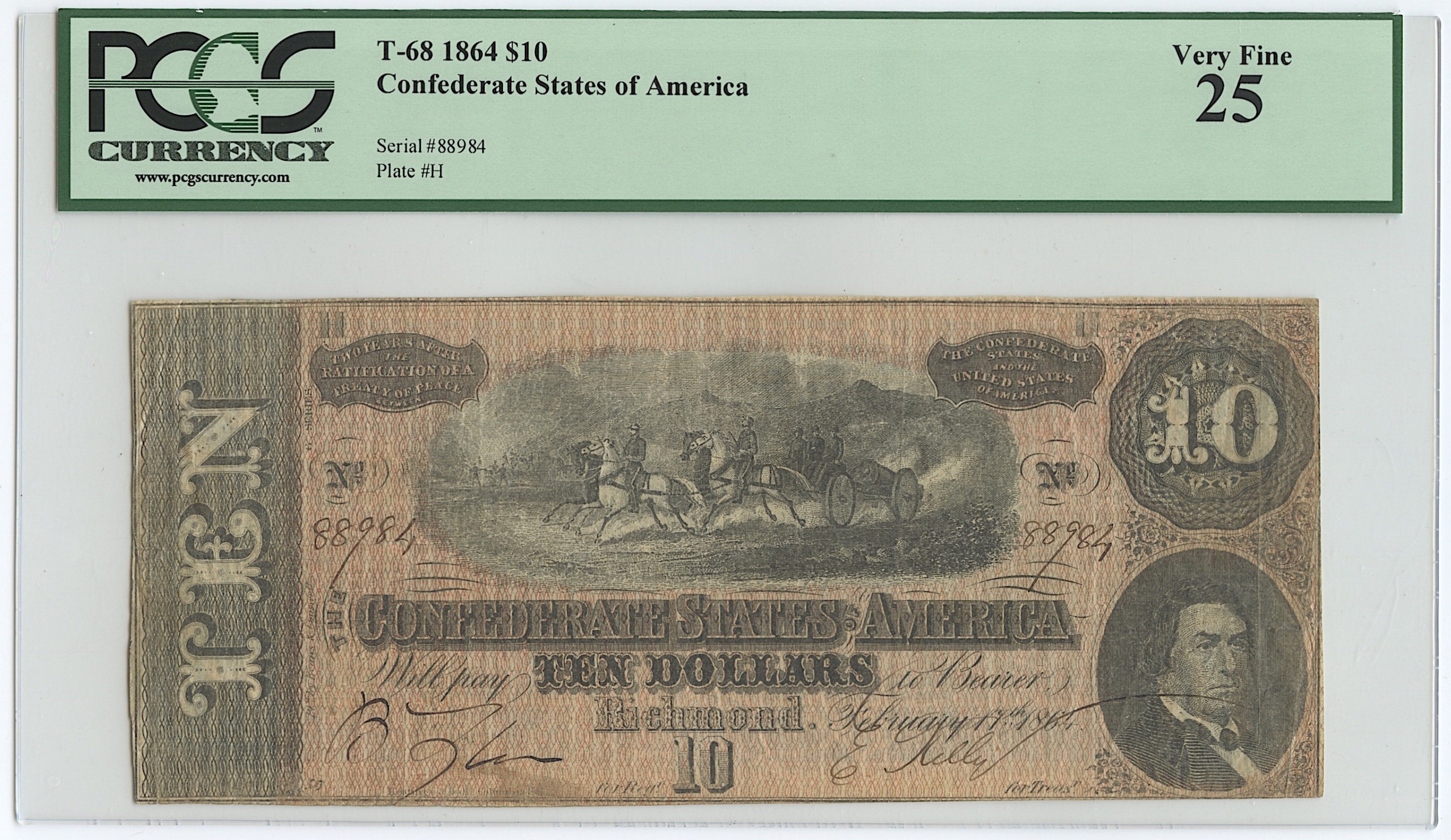 1864 $10 Ten Dollar Confederate States of America Richmond CSA Bank Note Bill T-68 (PCGS 25)