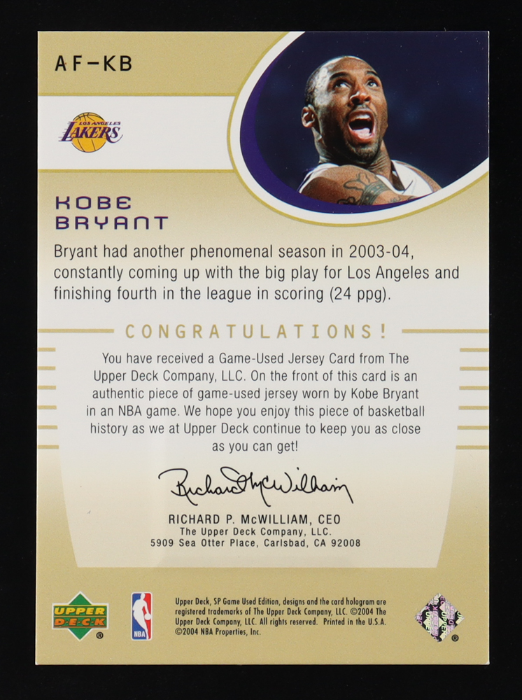 Kobe Bryant 2004-05 SP Game Used Authentic Fabrics Gold #KB #038/100