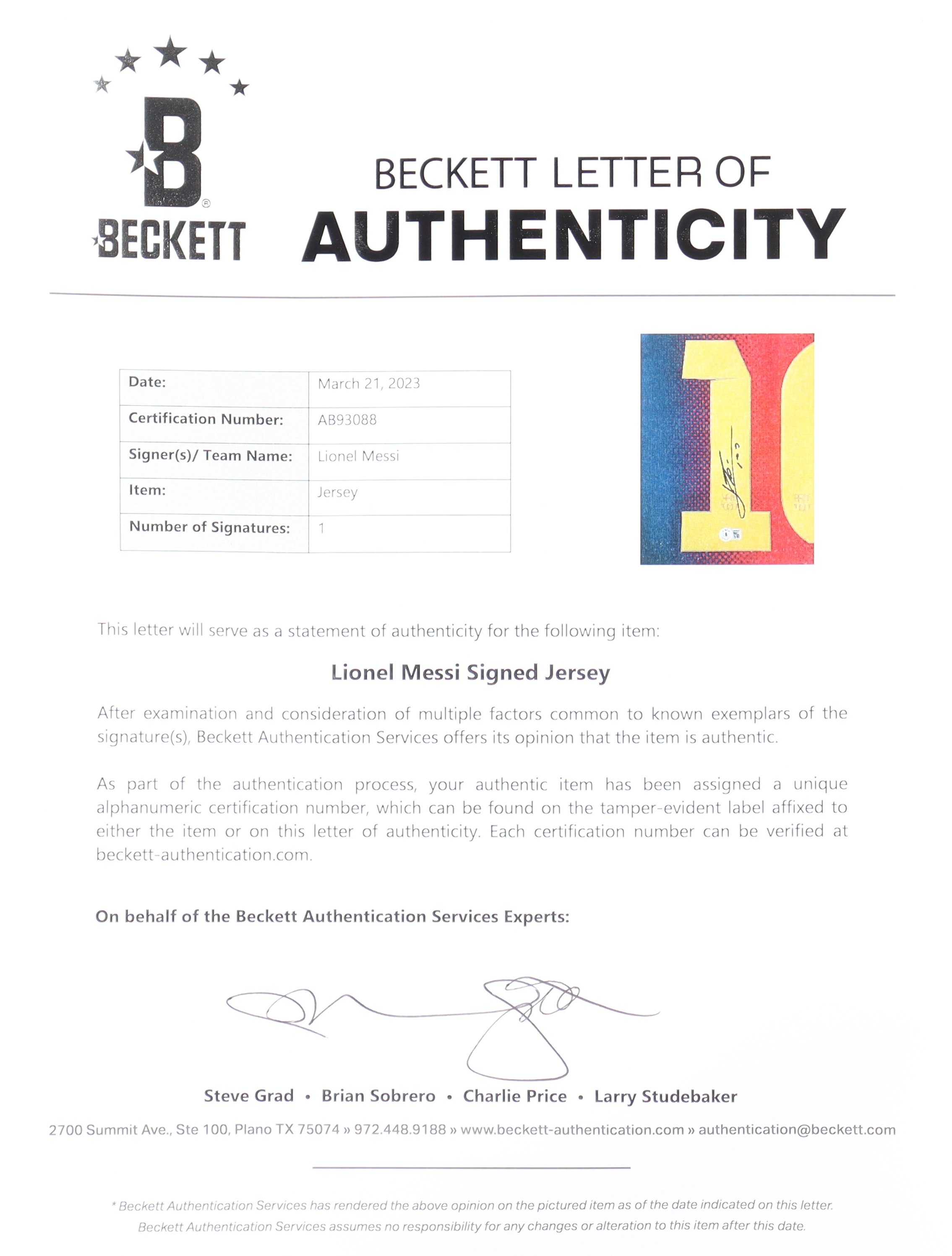 The autograph includes an official Beckett Authentication Services serially numbered hologram and matching LOA for authenticity purposes.