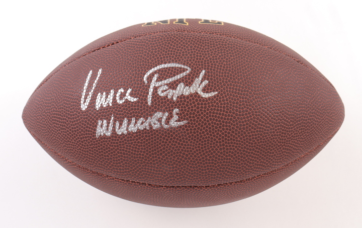Wilson NFL logo football. Hand-signed and inscribed by Vince Papale (Philadelphia Eagles).