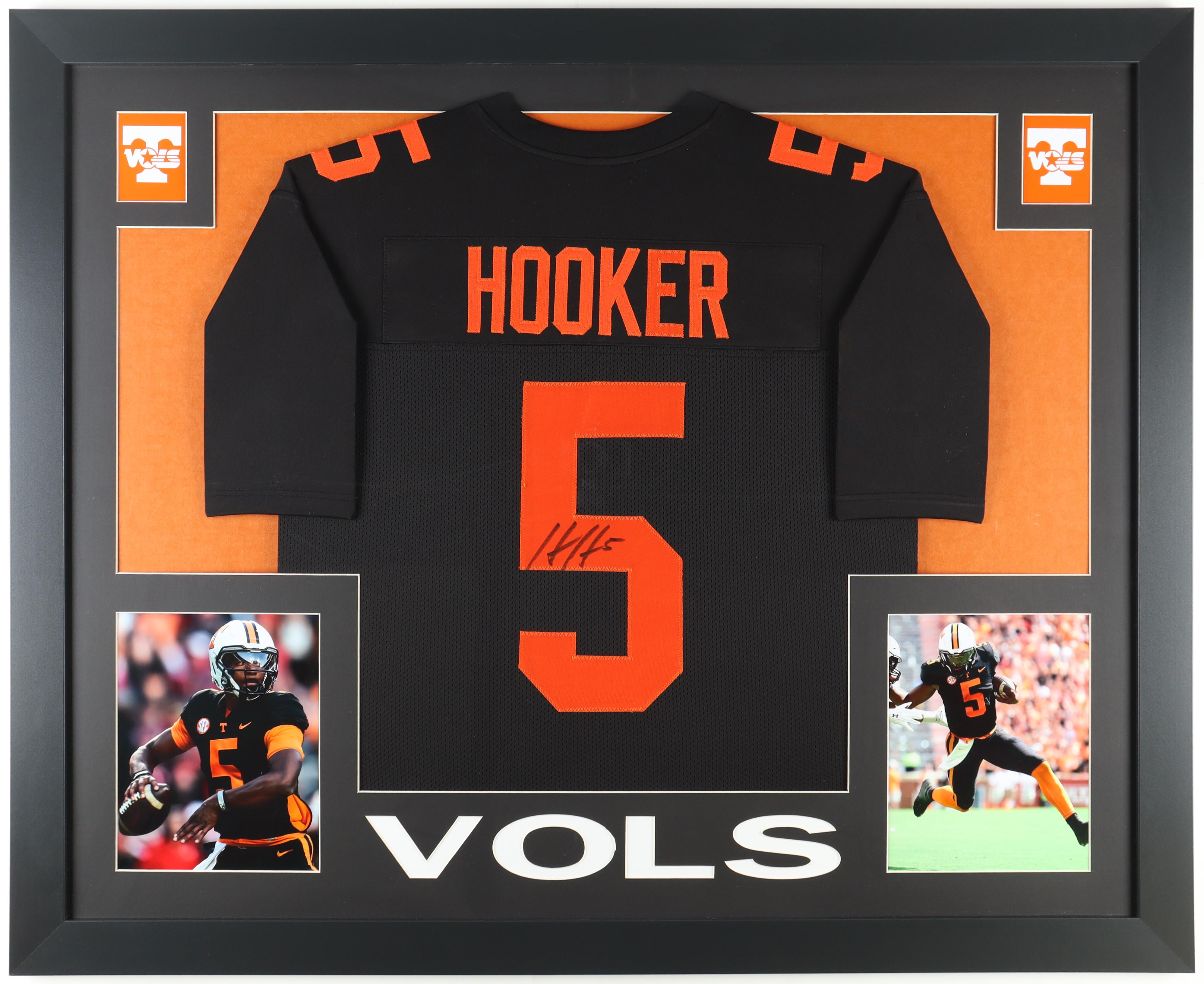 Custom frame measures 35" x 43" in size and features a jersey hand-signed by Hendon Hooker.