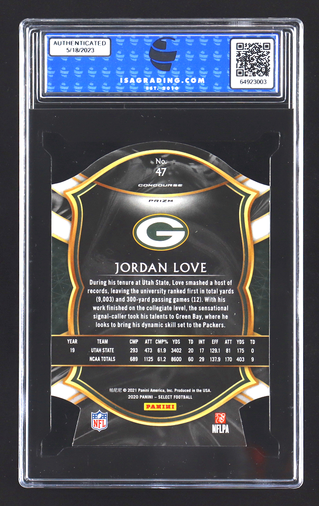 Jordan Love 2020 Select Prizm Blue Die Cut #47 RC (ISA 9)