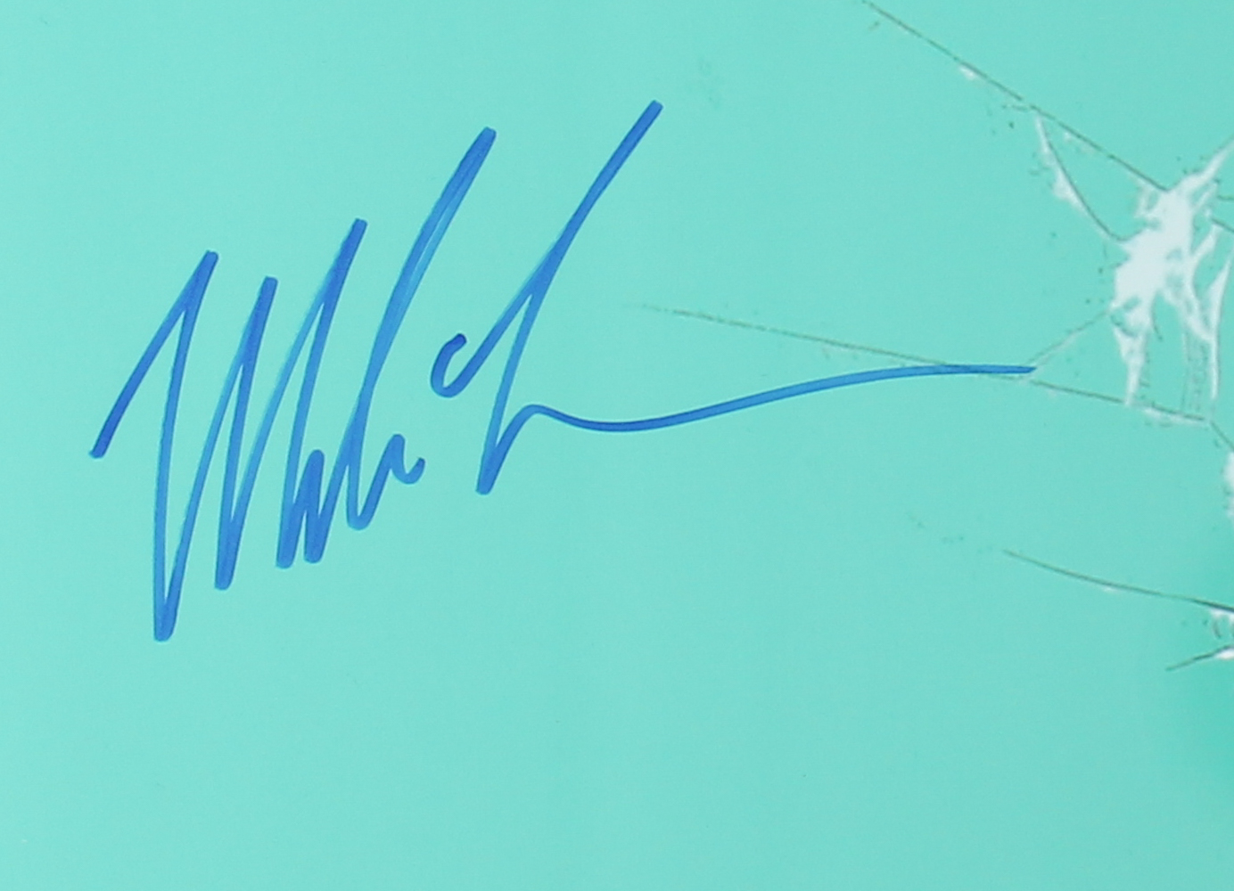 The photo is designed (from the original NES game) to appear as though Tyson has punched the screen and broken the glass.