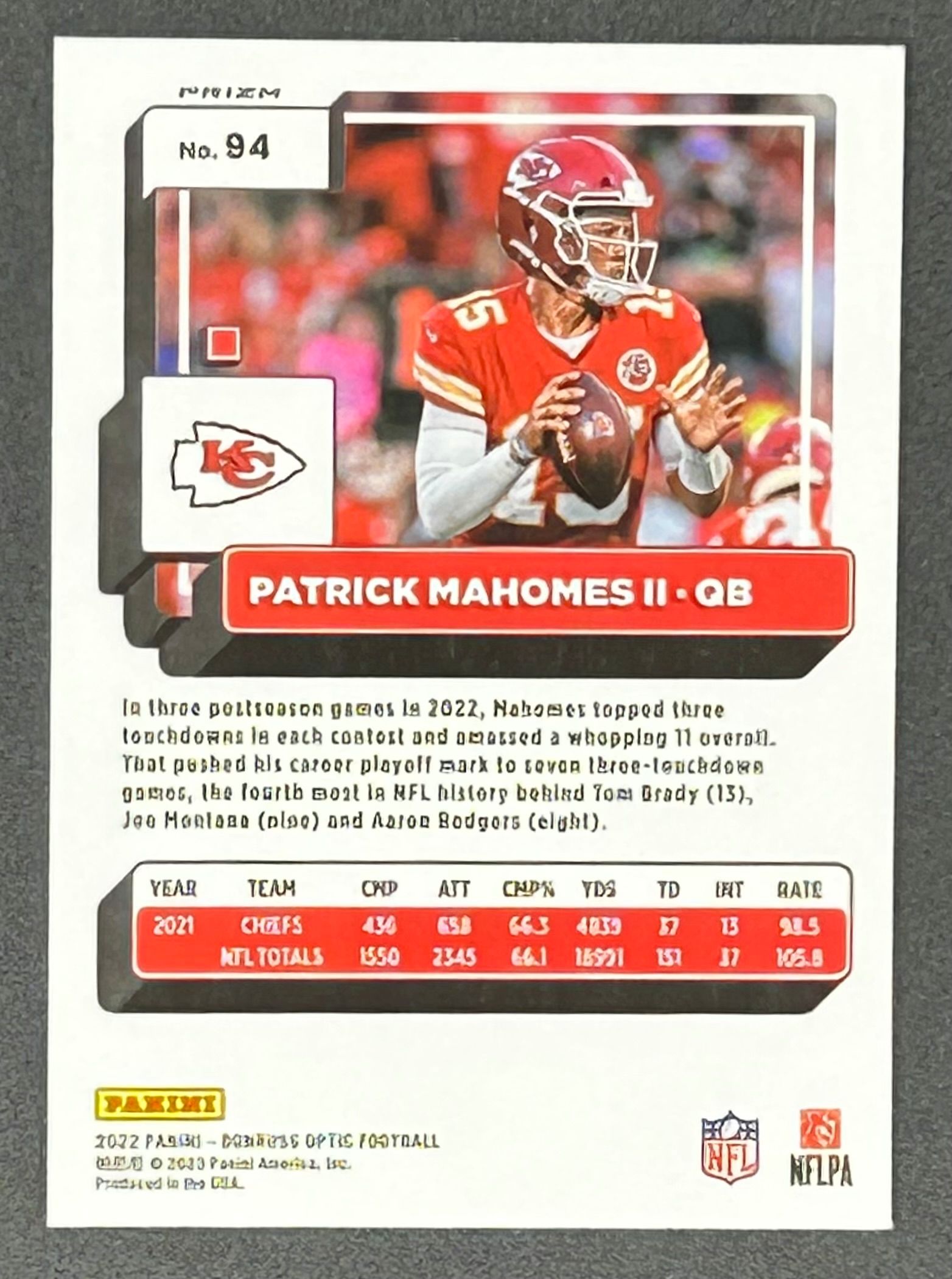 Patrick Mahomes II 2022 Donruss Optic Holo #94