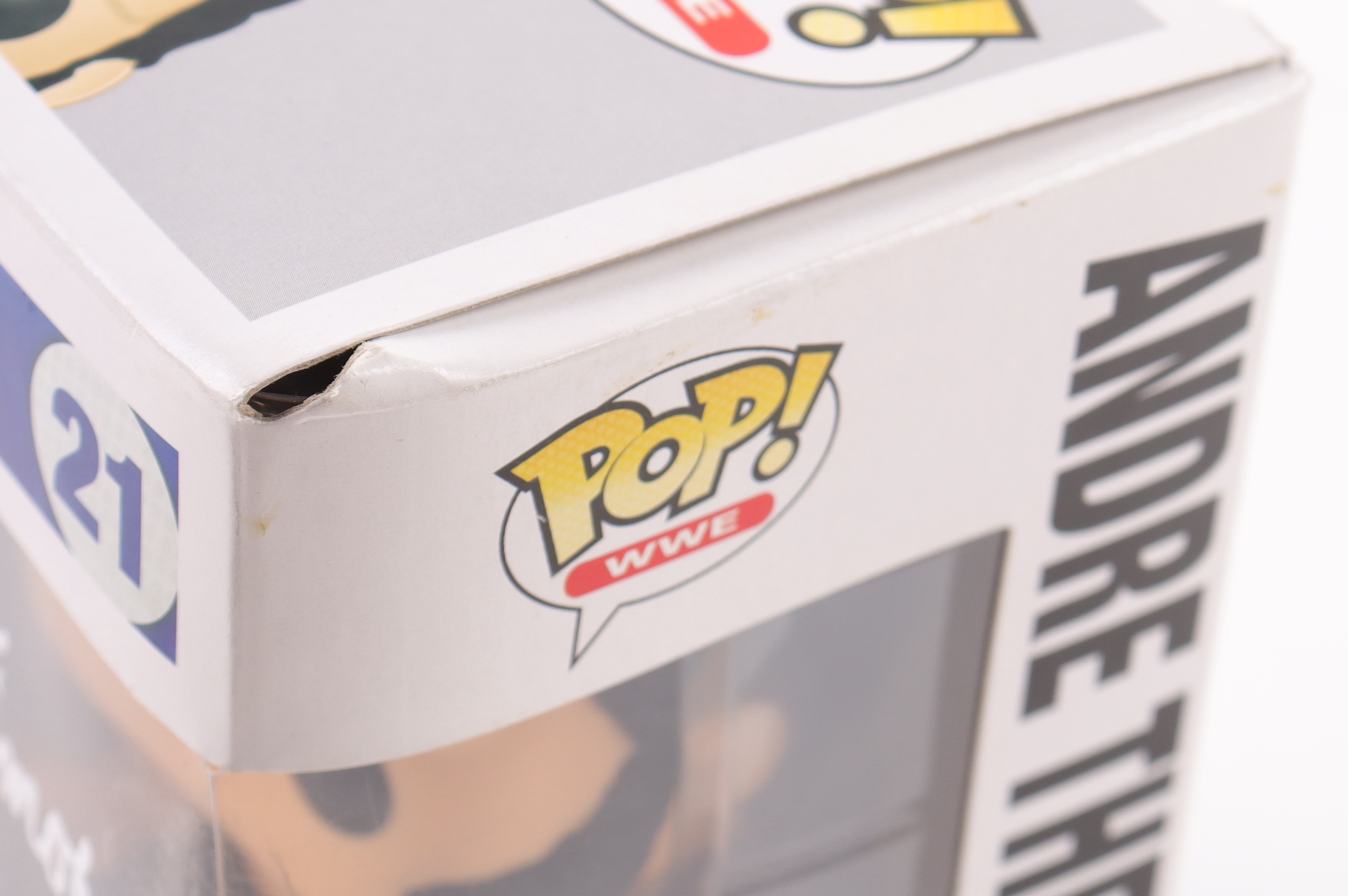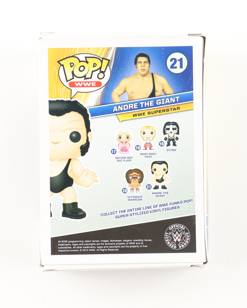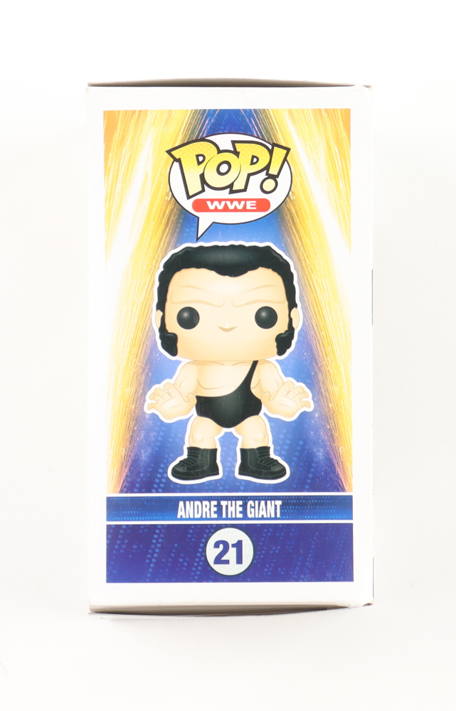 Funko Pop! vinyl figure measures approximately 4" tall and is hand-signed and inscribed on the packaging by Robin Roussimoff (Andre The Giants Daughter). Please note the top right side of the packaging is imperfect.