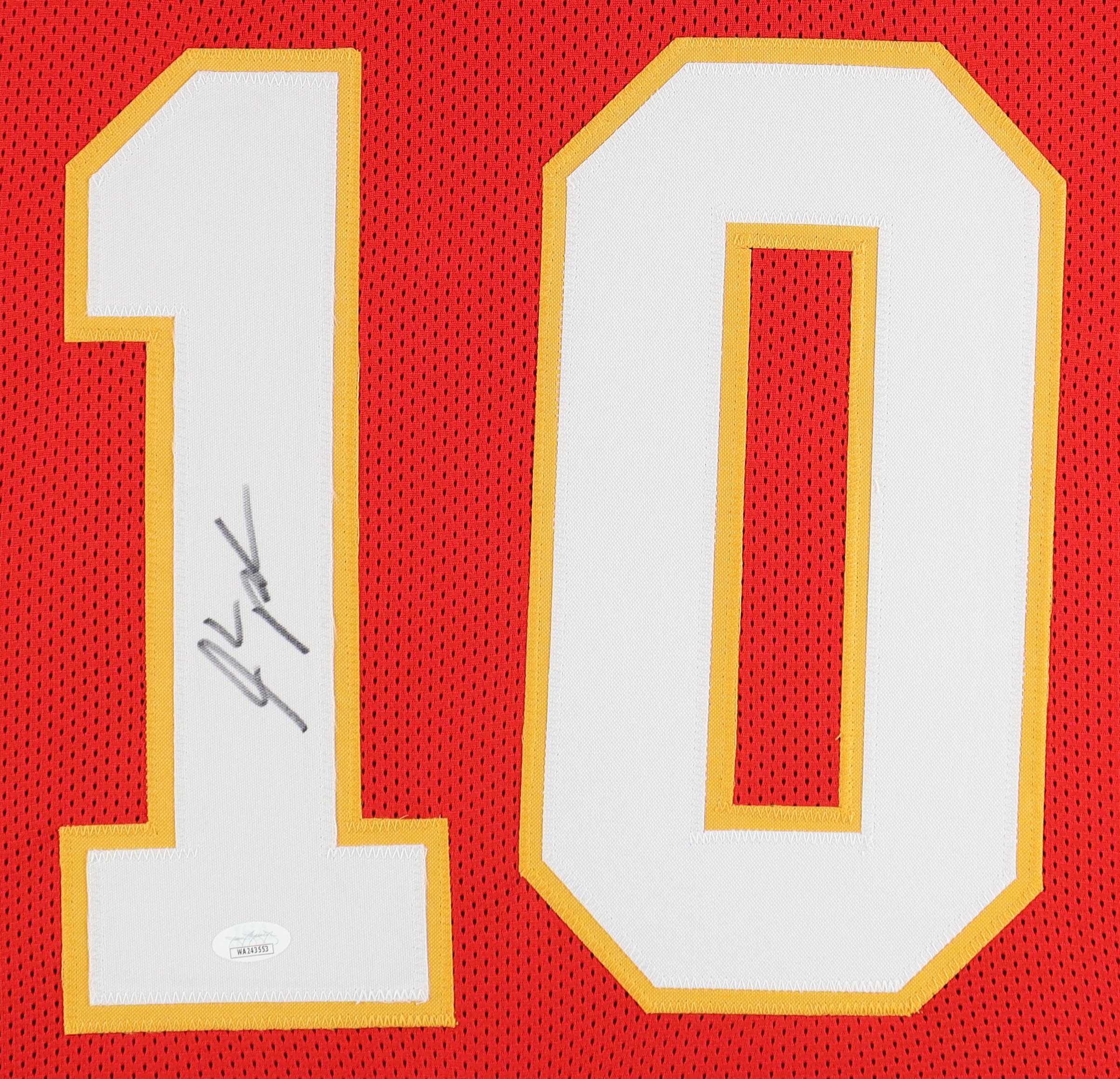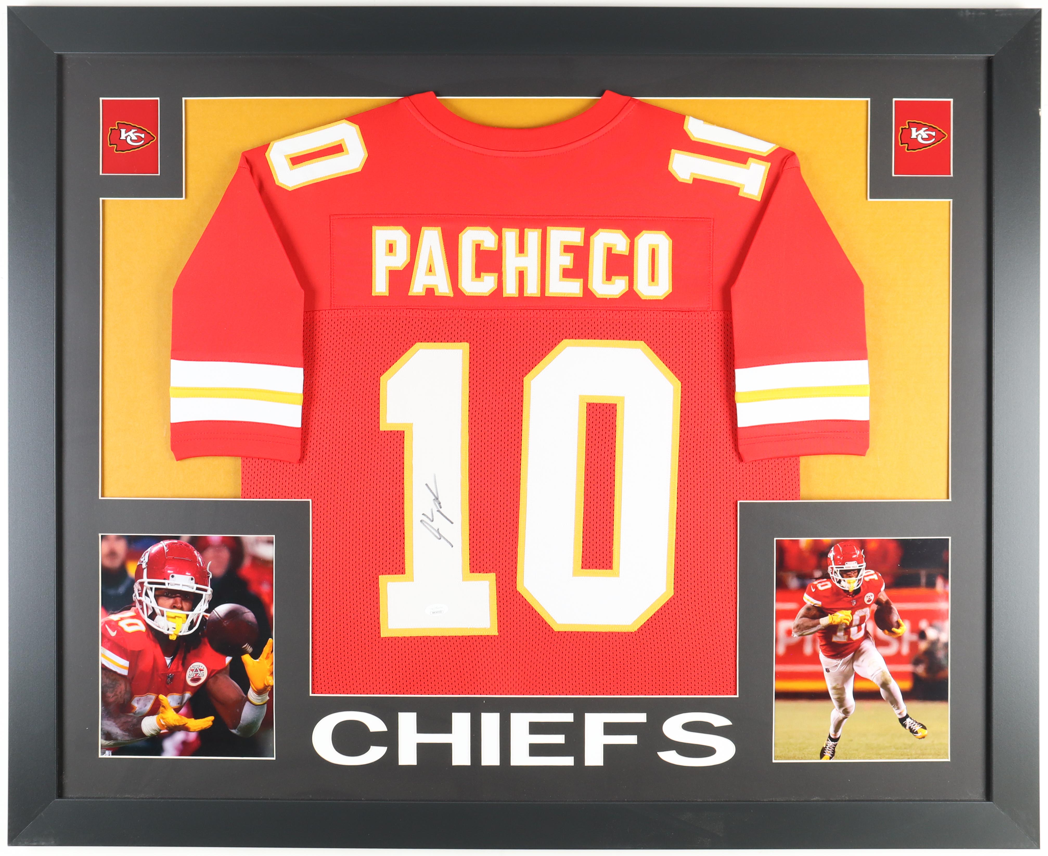 Custom frame measures approximately 35" x 43" in size and features a jersey hand-signed by Isiah Pacheco.