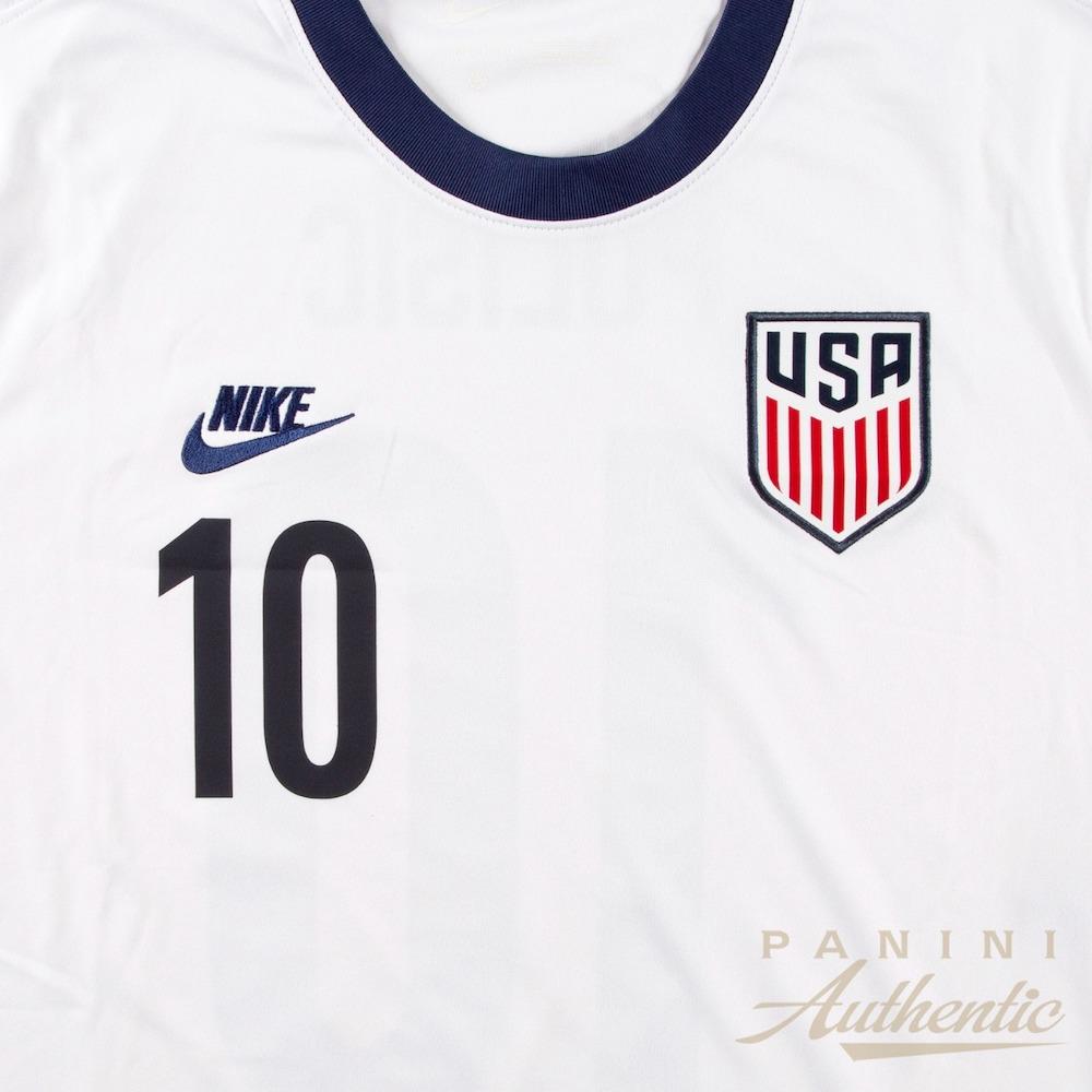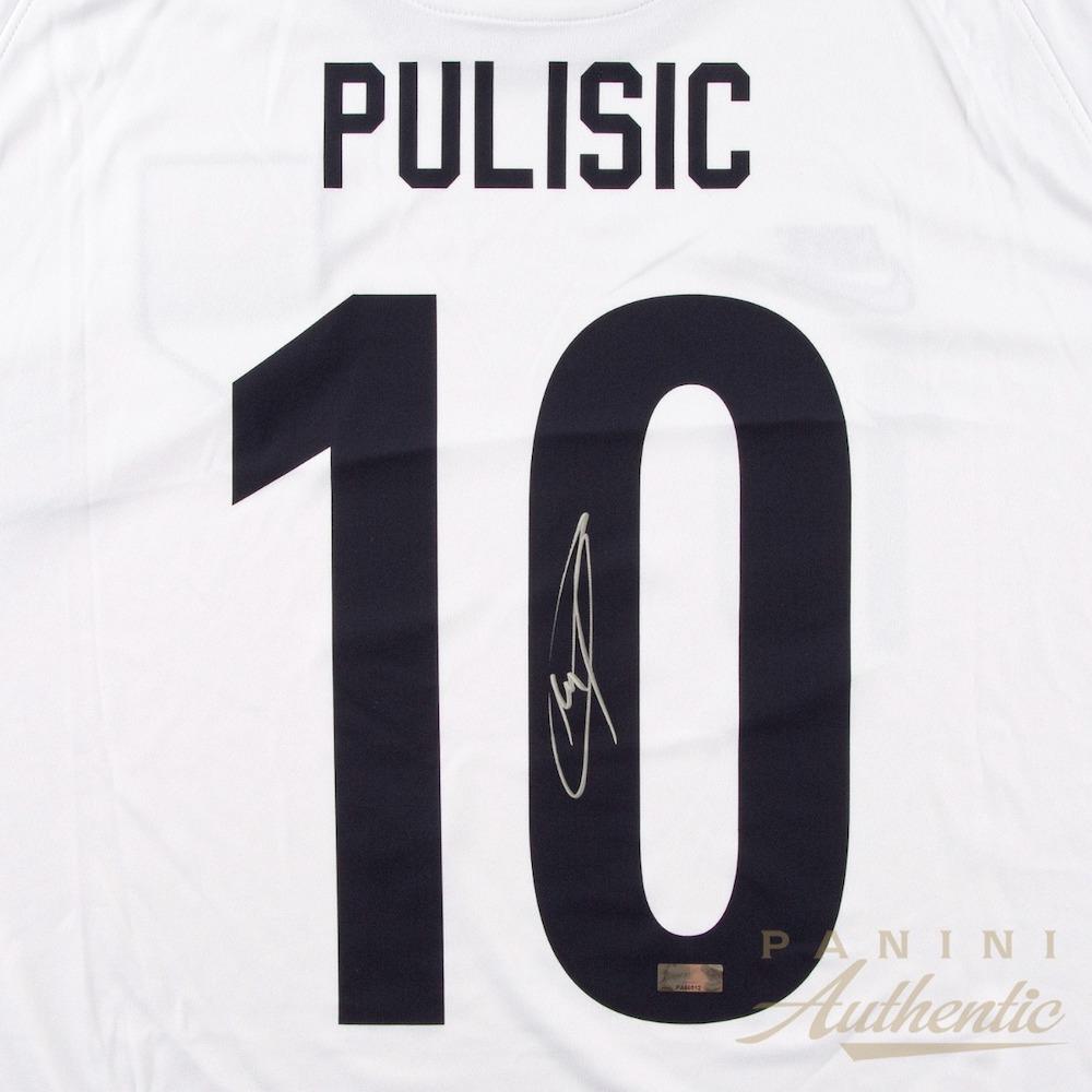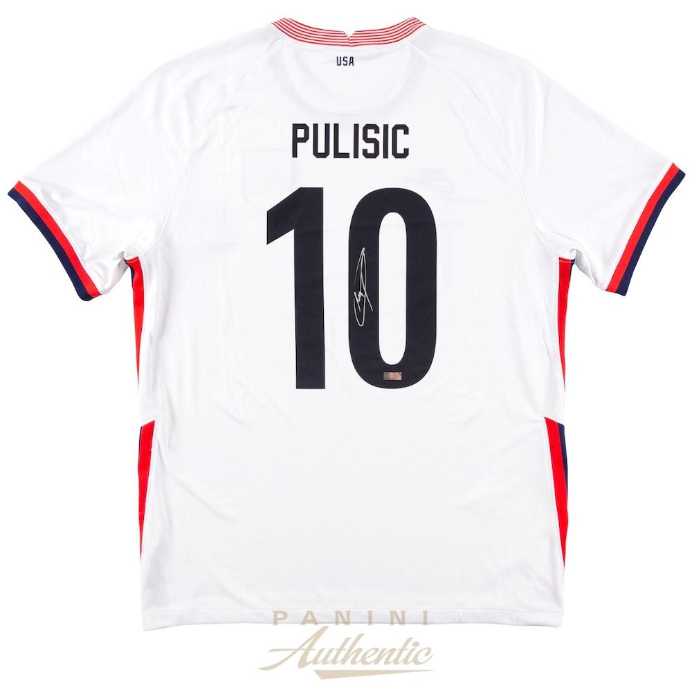Since breaking into the senior national team in 2016, Christian Pulisic immediately provided the superstar talent that the United States lacked. In his 50 appearances for the United States so far, Pulisic has netted 21 goals and assisted on another 10 goals while providing some much needed creativity on the attacking side of the pitch. With one CONCACAF trophy under his belt and a talented team surrounding him, Christian has his sights set on a deep World Cup run and continued dominance in the CONCACAF region. Root for Pulisic and the next generation of US Soccer with this autographed jersey! This autographed jersey size L includes a Panini Authentic certificate of authenticity with a unique hologram number that corresponds to the hologram on the actual collectible. These holograms protect the integrity of the product and serve to guarantee the authenticity of the signature and inscription it bears.