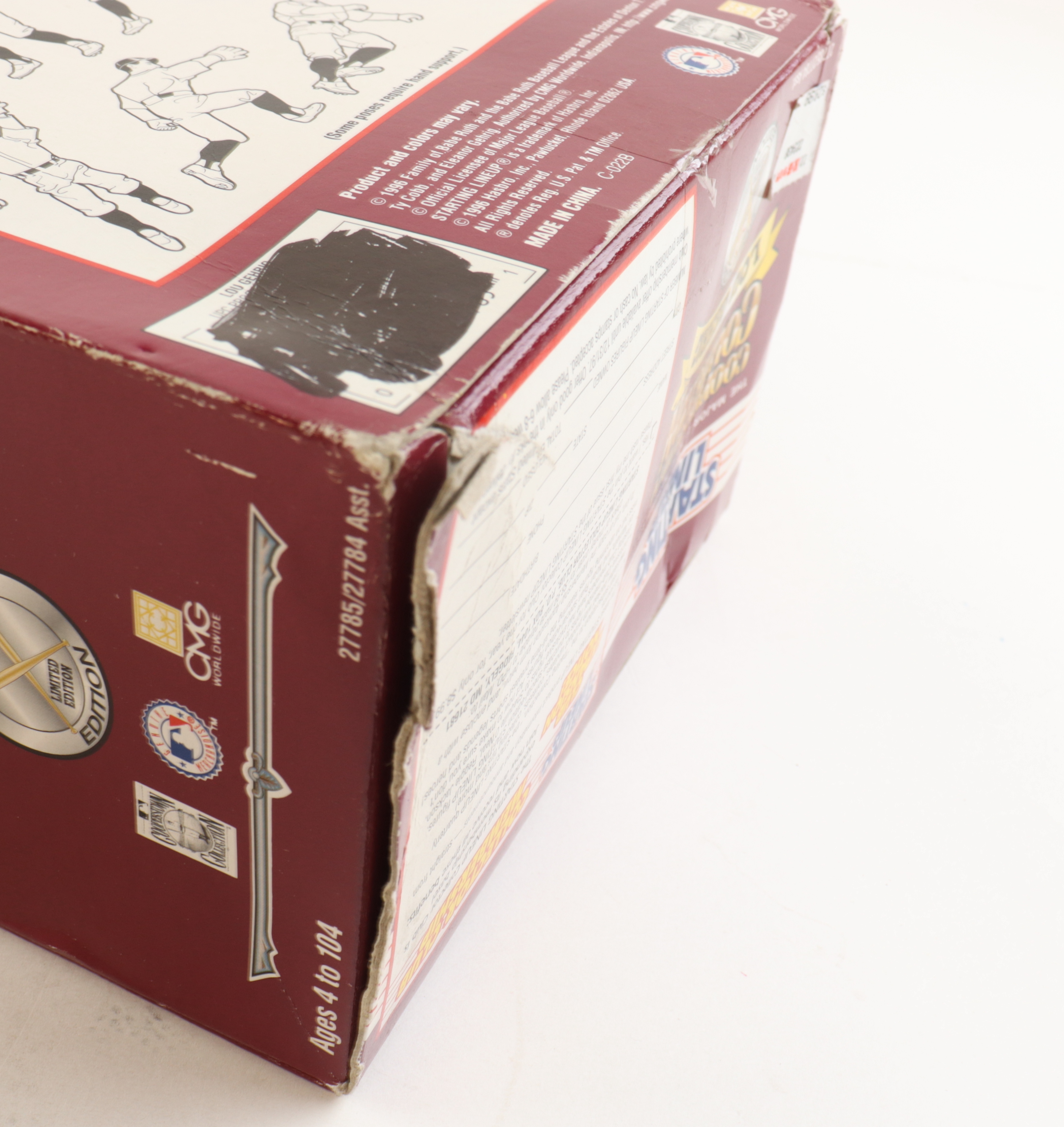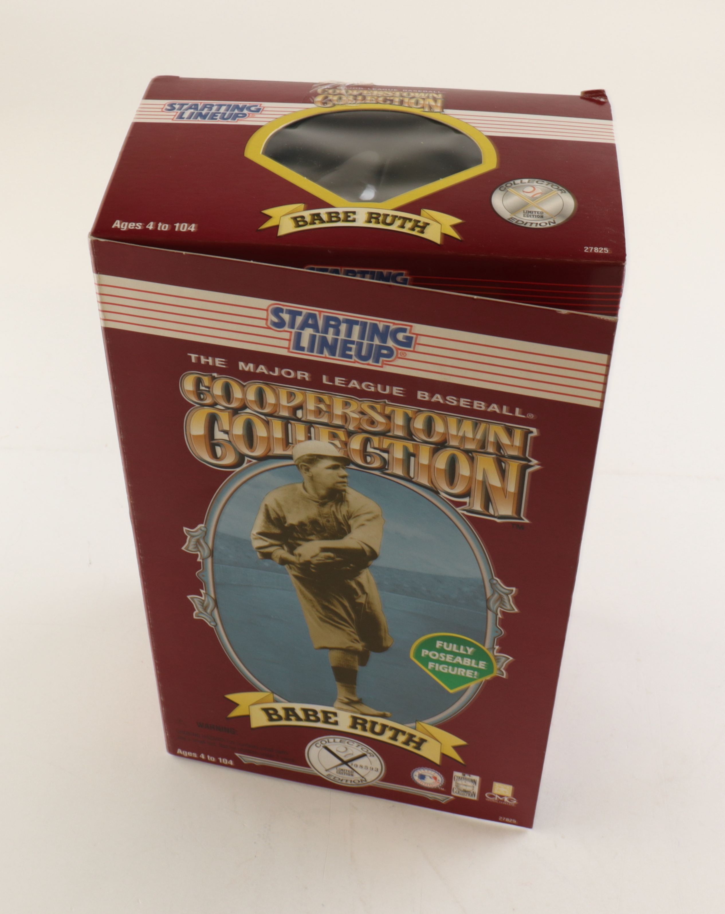 1996 Cooperstown Collection Starting Lineup Figure of Babe Ruth (D. 1948, New York Yankees, HOF). Figure measures 12" tall and comes with original packaging. Limited edition serially numbered #08593. Please note, the figure is unsigned.