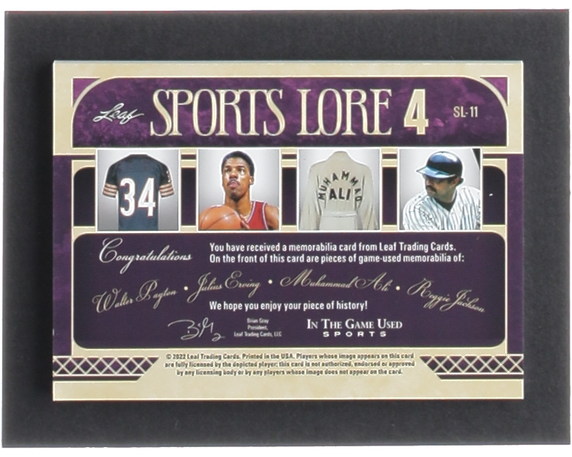 Walter Payton / Julius Erving / Muhammad Ali / Reggie Jackson 2022 ITG Used Sports Sports Lore 4 Materials Red Pattern #SL411 #2/3