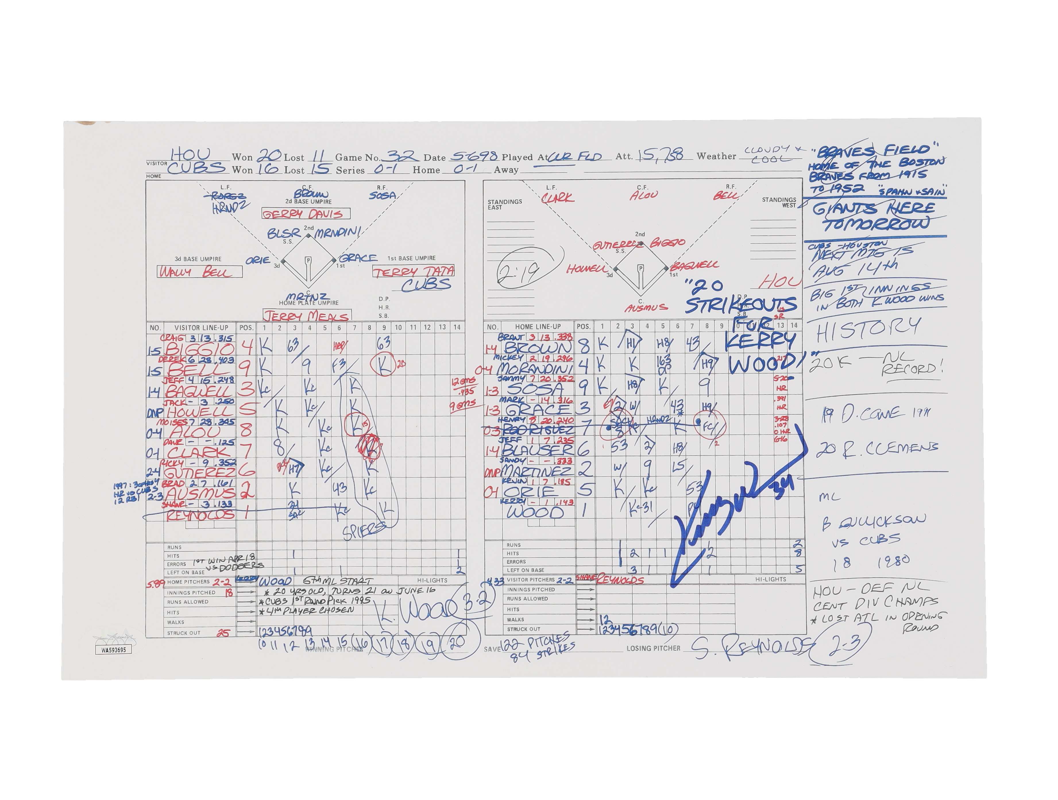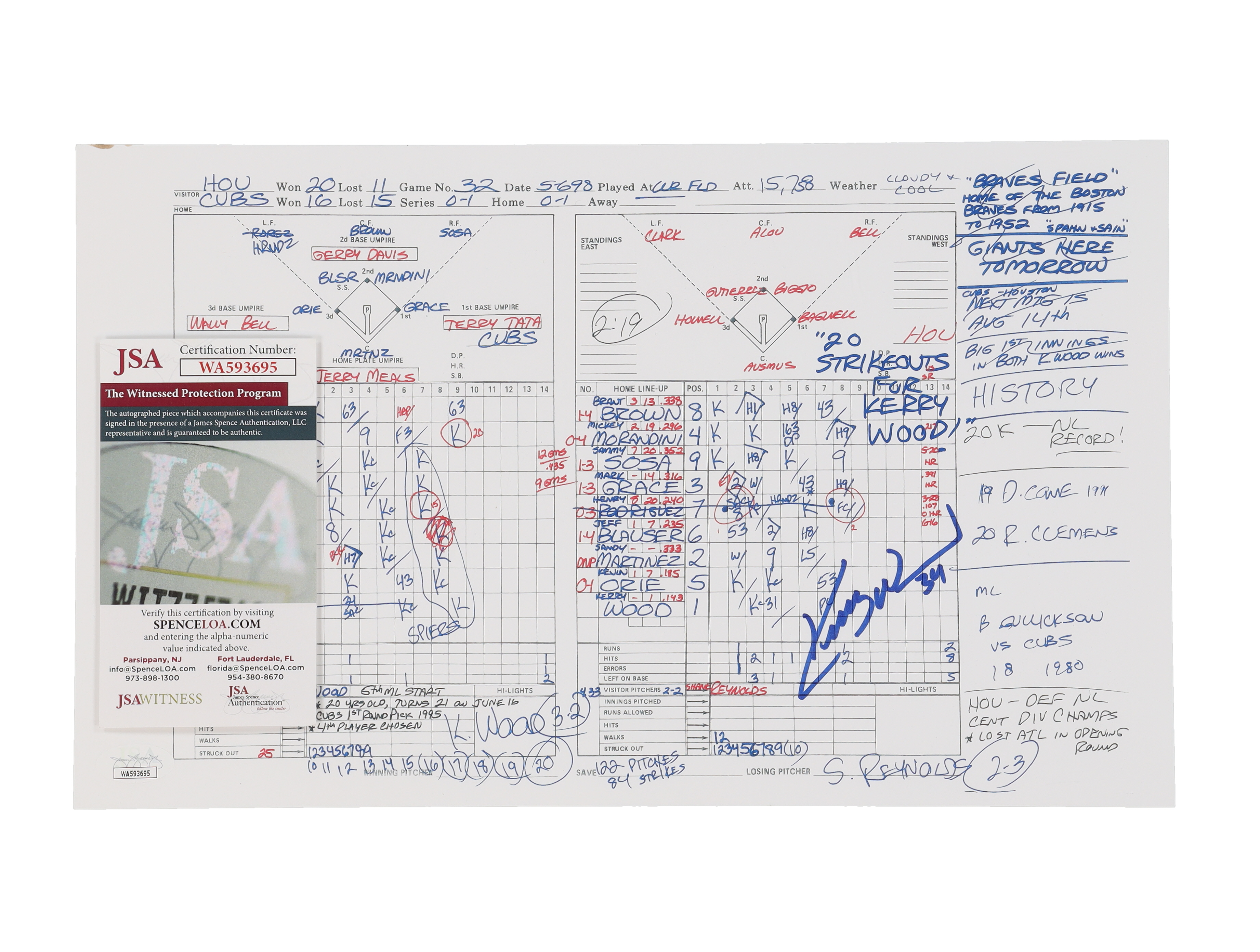 Kerry Wood Signed 9x14 Replica Scorecard 20 Strikeouts In One Game (JSA)