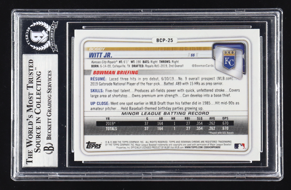 Bobby Witt Jr. Signed 2020 Bowman Chrome Prospects #BCP25 RC (BGS)