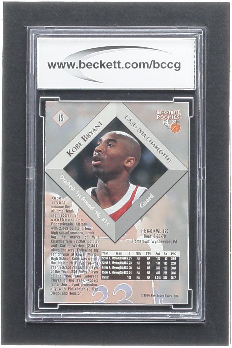Kobe Bryant 1996 Score Board Autographed BK #15 RC (BCCG 10)