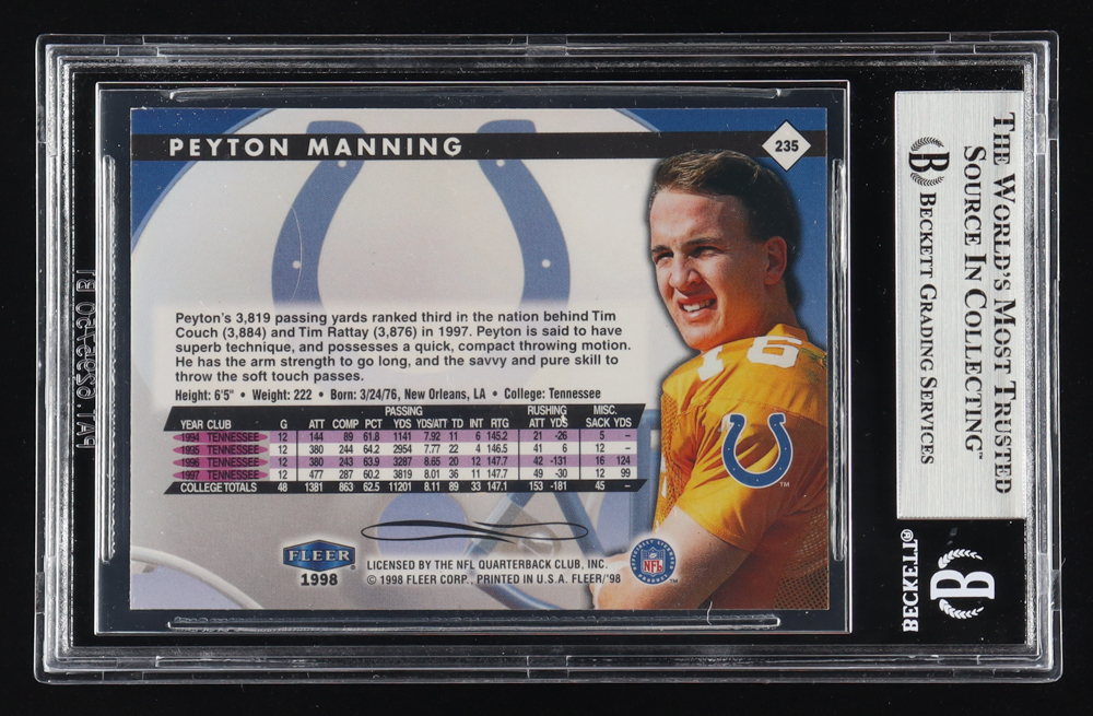 Peyton Manning 1998 Fleer Tradition #235 RC (BGS 8)
