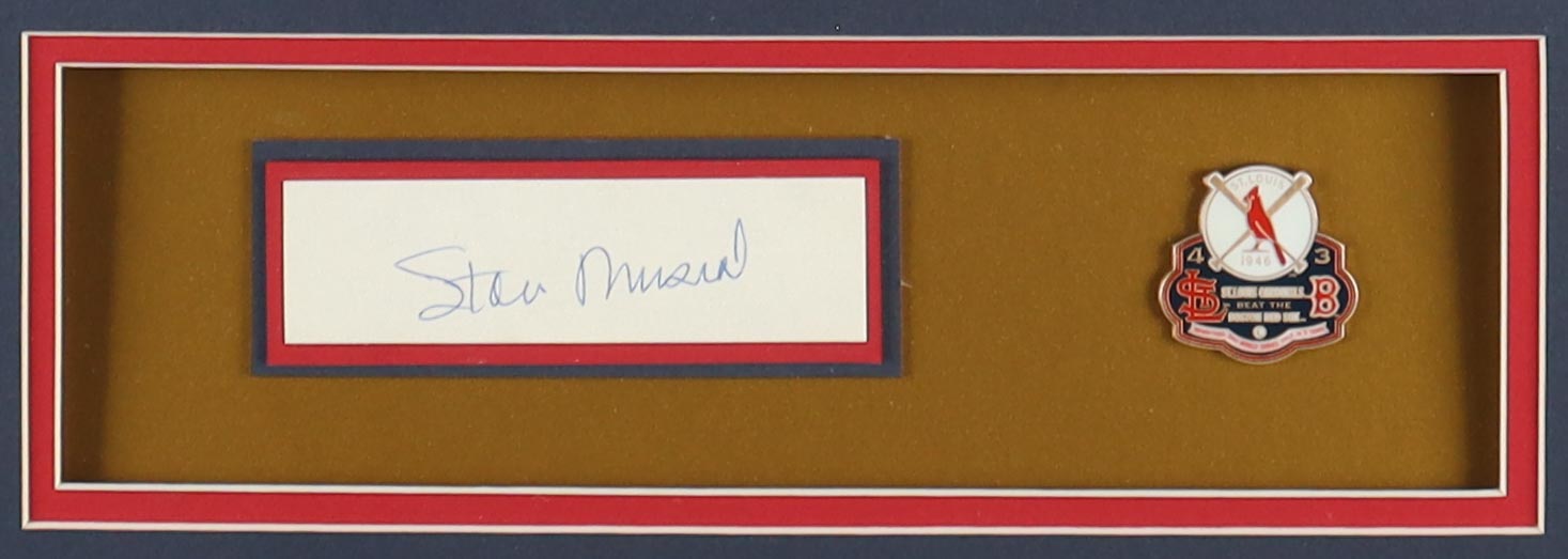 Stan Musial Signed Cardinals Custom Framed Cut Display with Jersey & 1946 World Series Pin (Beckett)