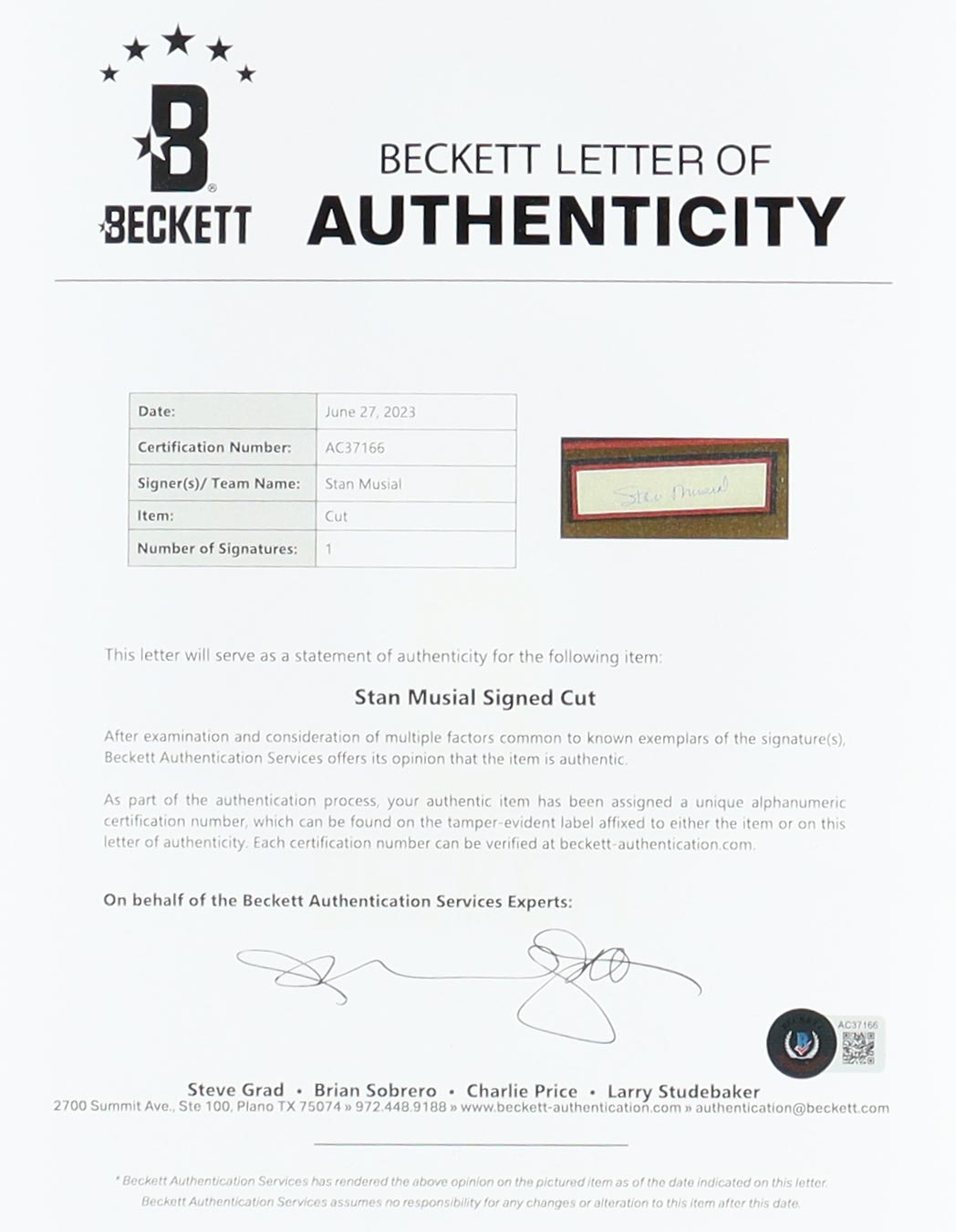 The autograph includes an official Beckett Authentication Services hologram and matching LOA for authenticity purposes.