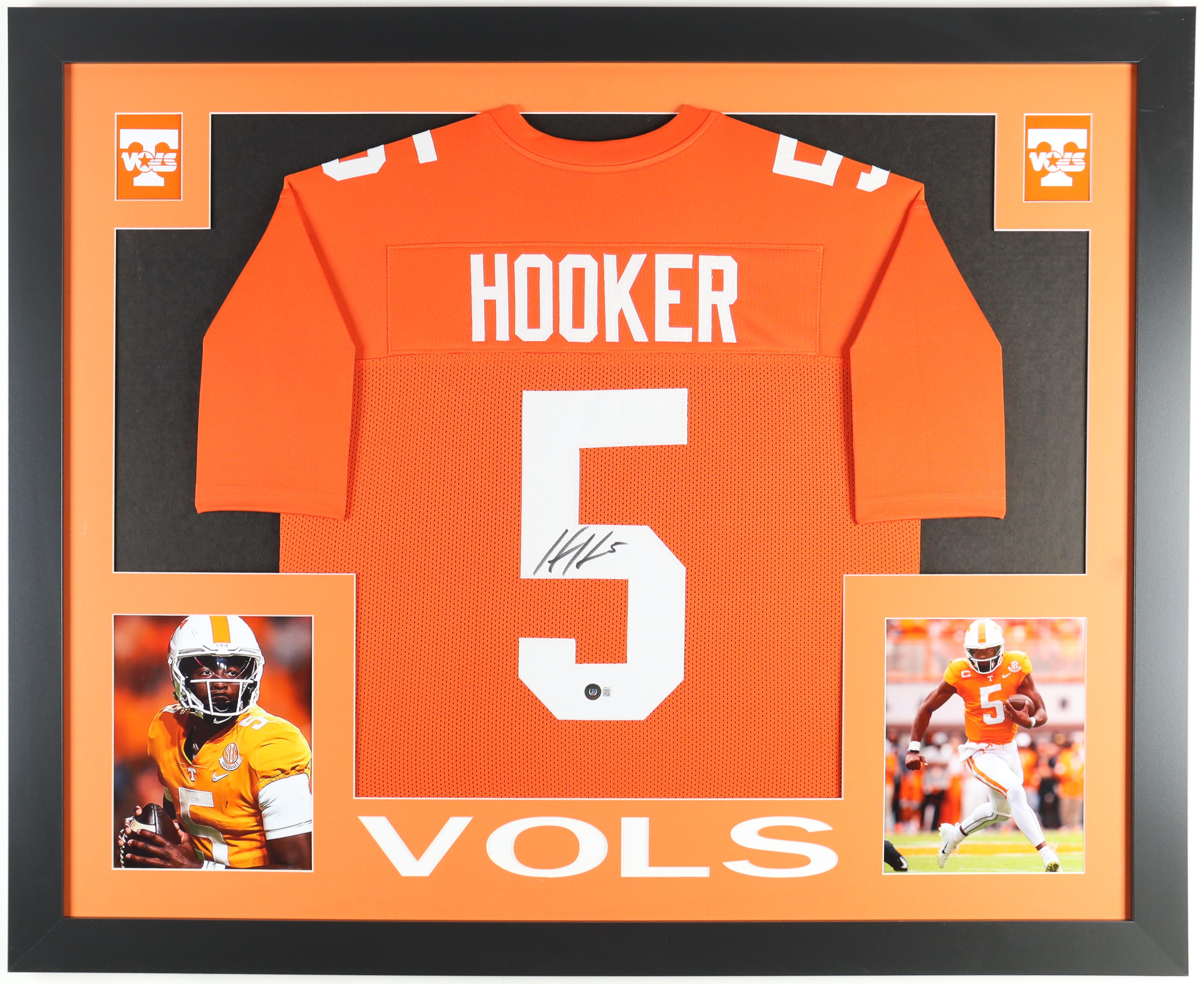 Custom frame measures 35" x 43" in size and features a jersey hand-signed by Hendon Hooker.