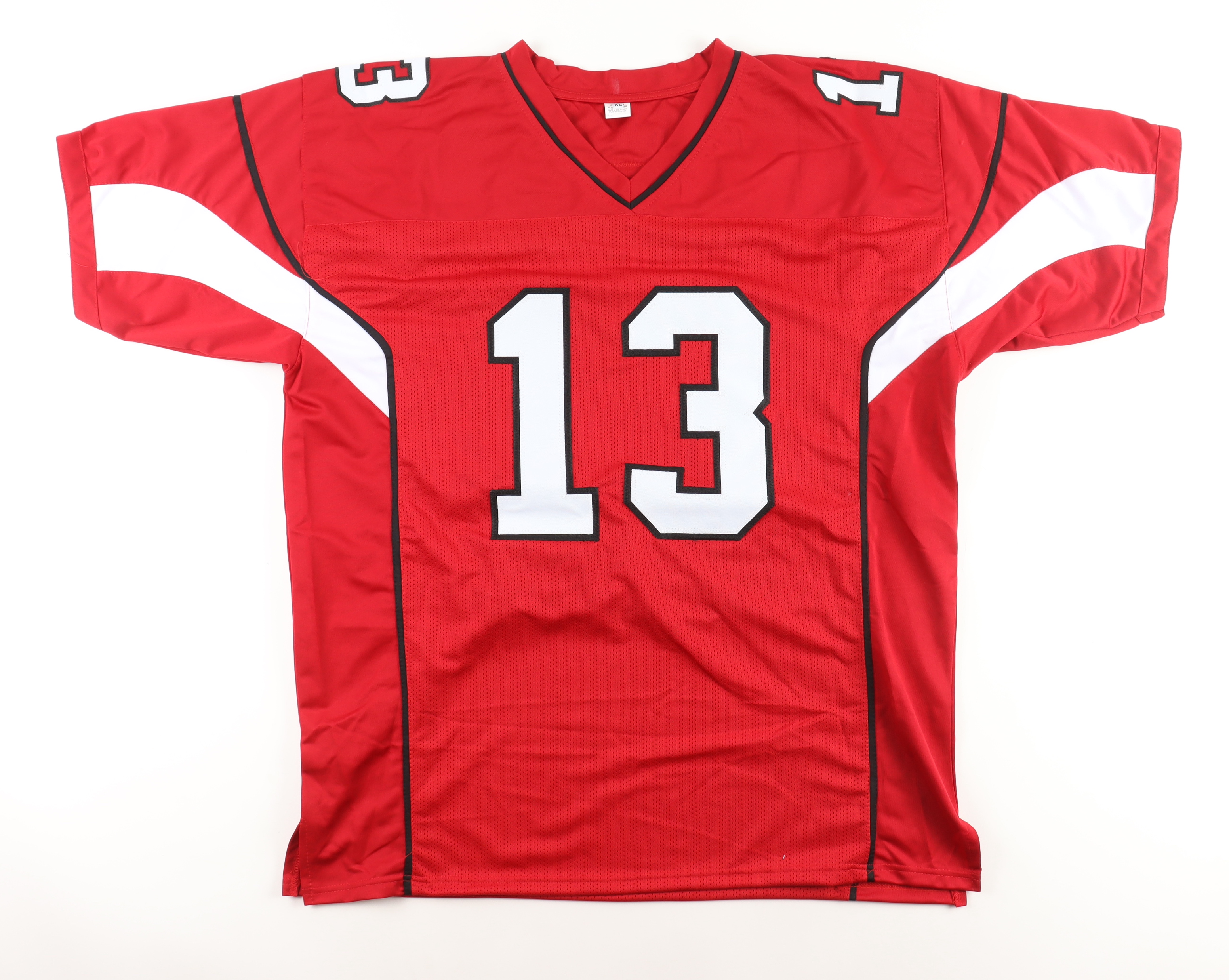 Custom jersey with everything sewn on, size XL. Hand-signed by Kurt Warner (HOF).
