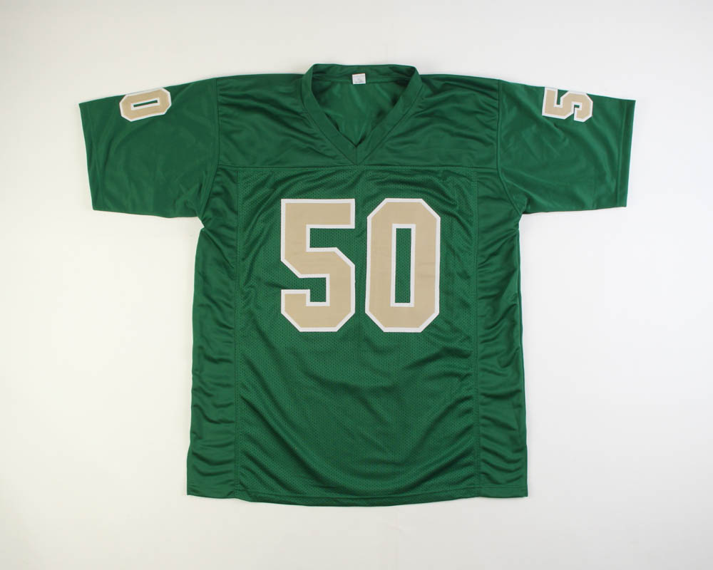 Custom on-field style jersey. Everything sewn on, size XL. Hand-signed by Chris Zorich.