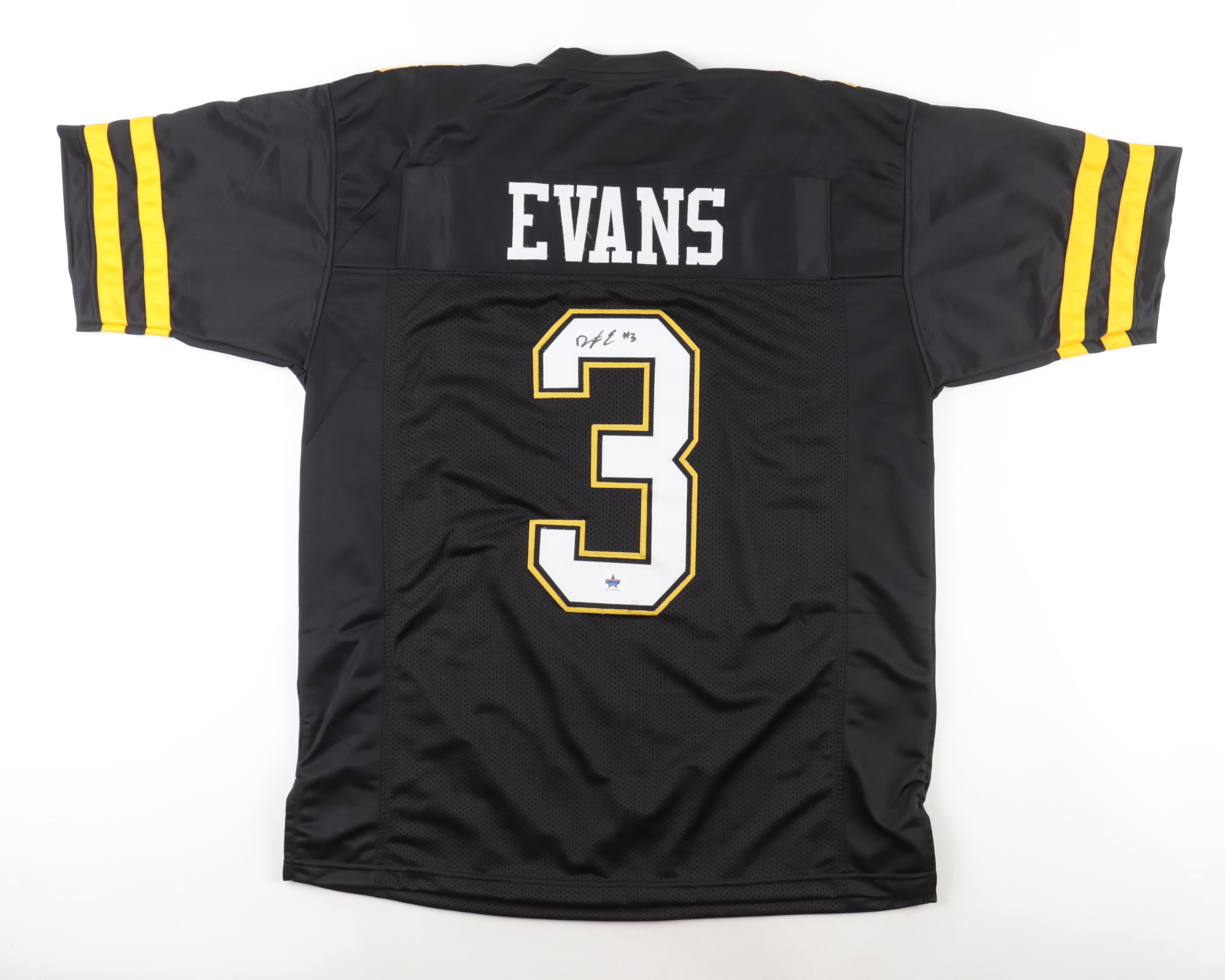 Custom jersey. Everything is sewn on, size XL. Hand-signed by Darrynton Evans.