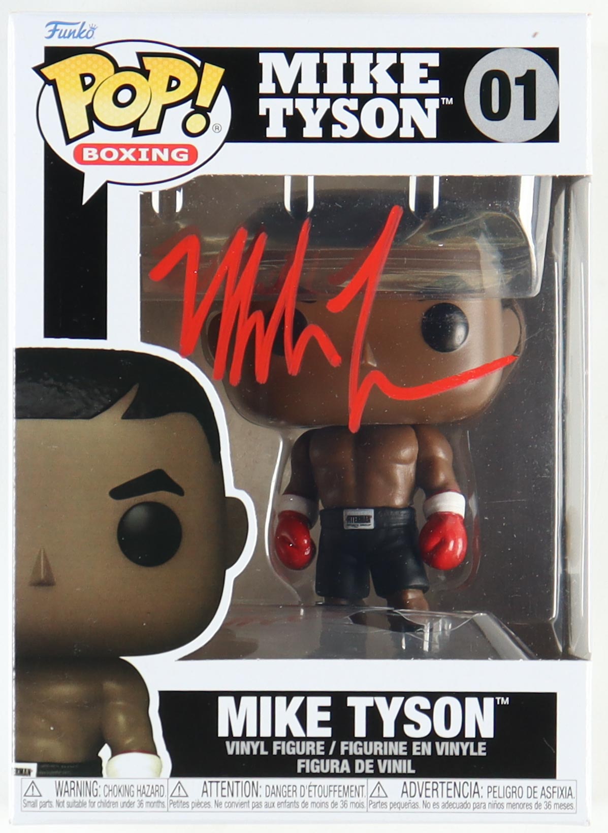 Funko Pop! vinyl figure measures approximately 4" tall and has been hand-signed on the packaging by Mike Tyson (HOF).