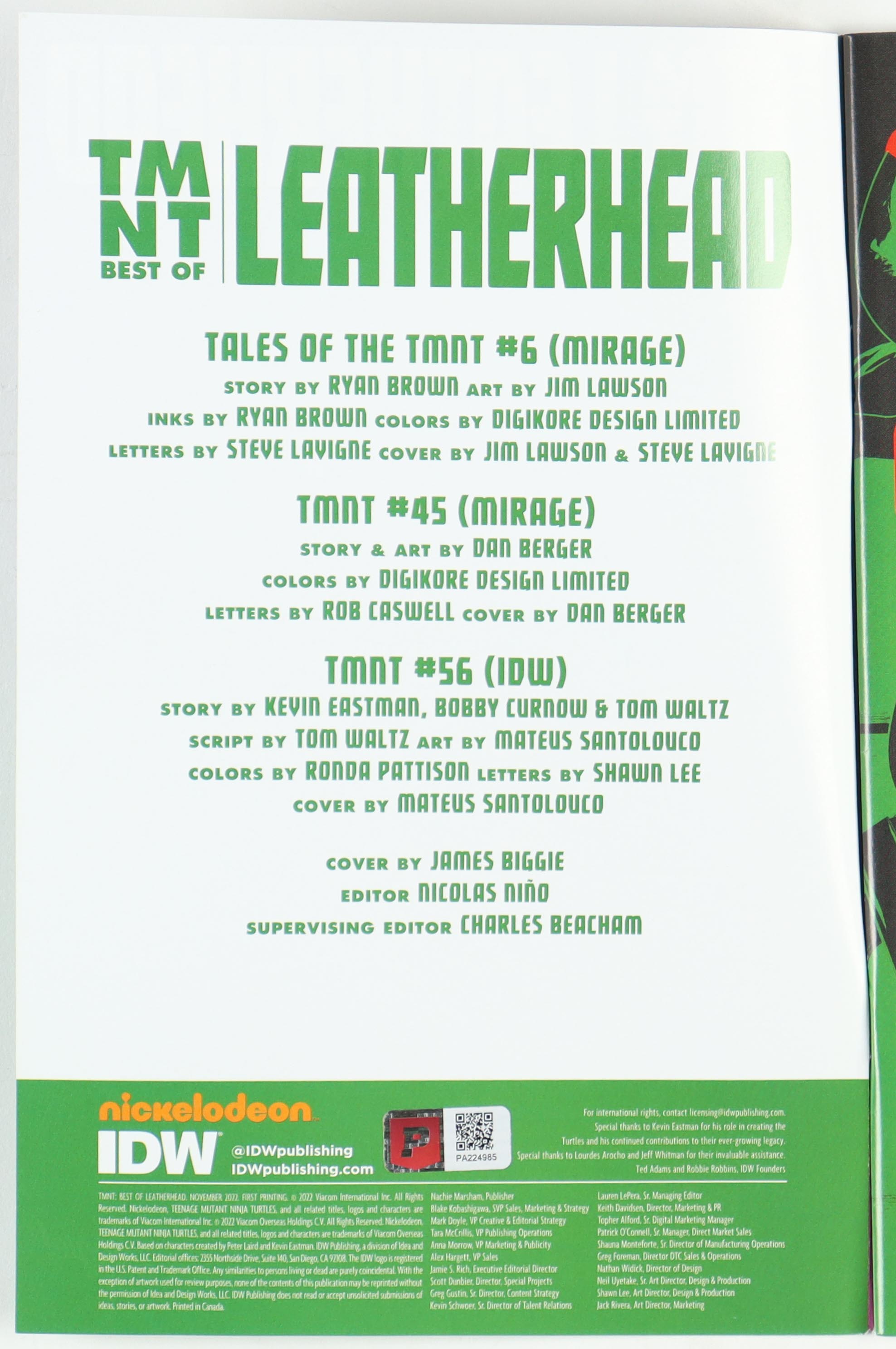 Kevin Eastman Signed "Teenage Mutant Ninja Turtles" Best Of Leatherhead Issue #1 IDW Comic Book (PA)