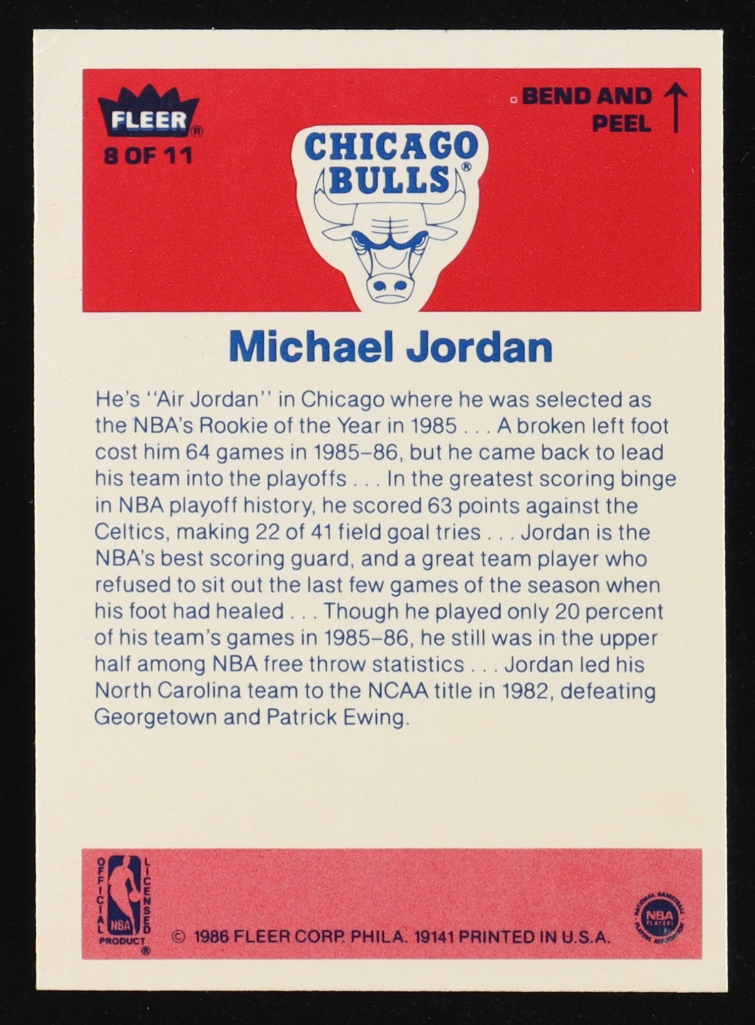 The 1986 Fleer Michael Jordan sticker is a highly sought-after basketball collectible and trading card. It is one of the most iconic and valuable cards in the sports memorabilia market. The card features a young Michael Jordan, who was a rising star in the NBA at the time.