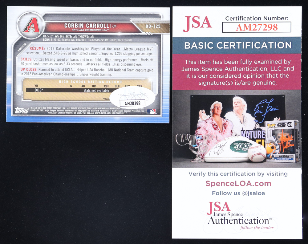 Corbin Carroll Signed 2019 Bowman Draft #BD125 (JSA)