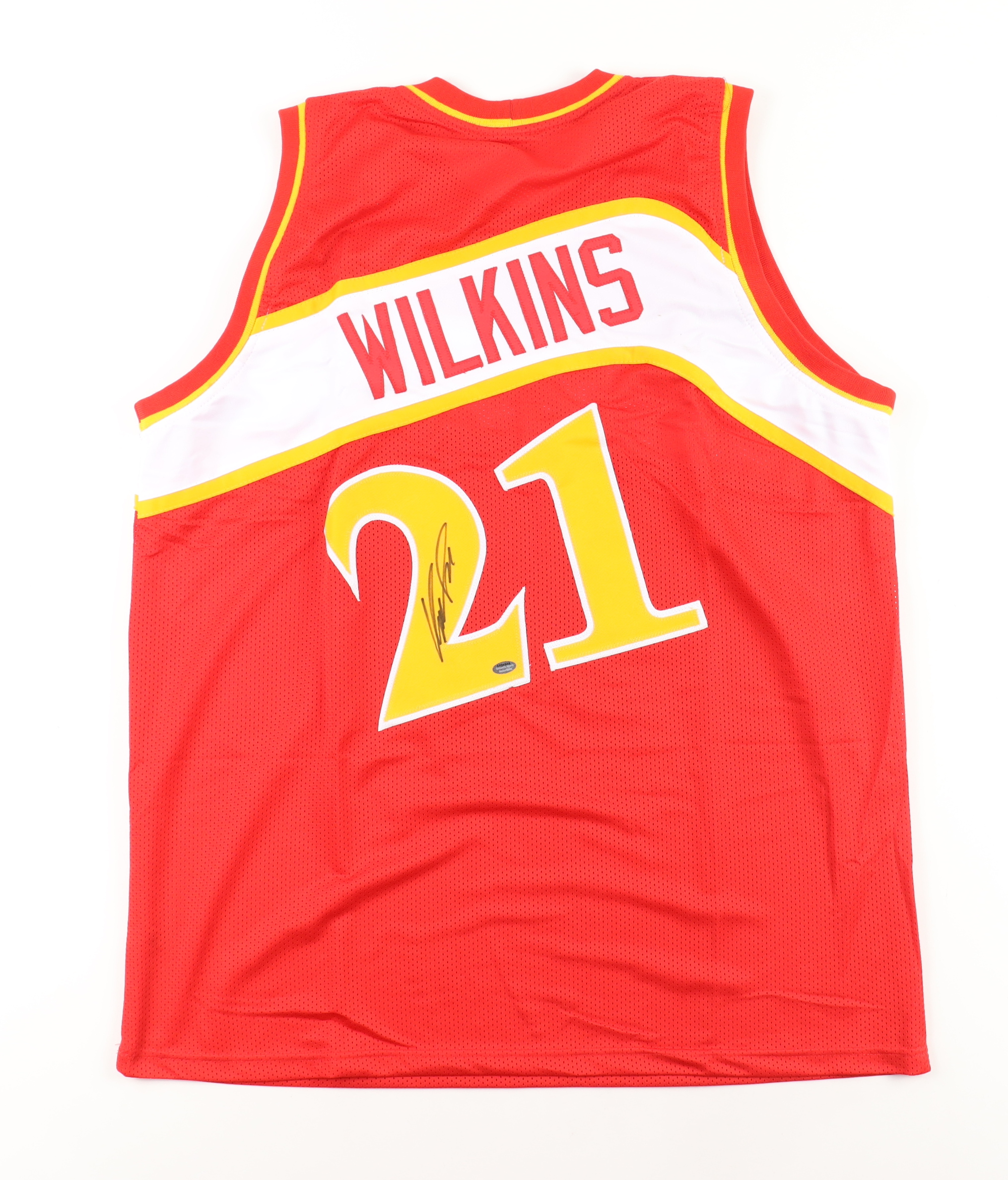 Custom jersey with everything sewn on, size XL. Hand-signed by Dominique Wilkins (HOF).
