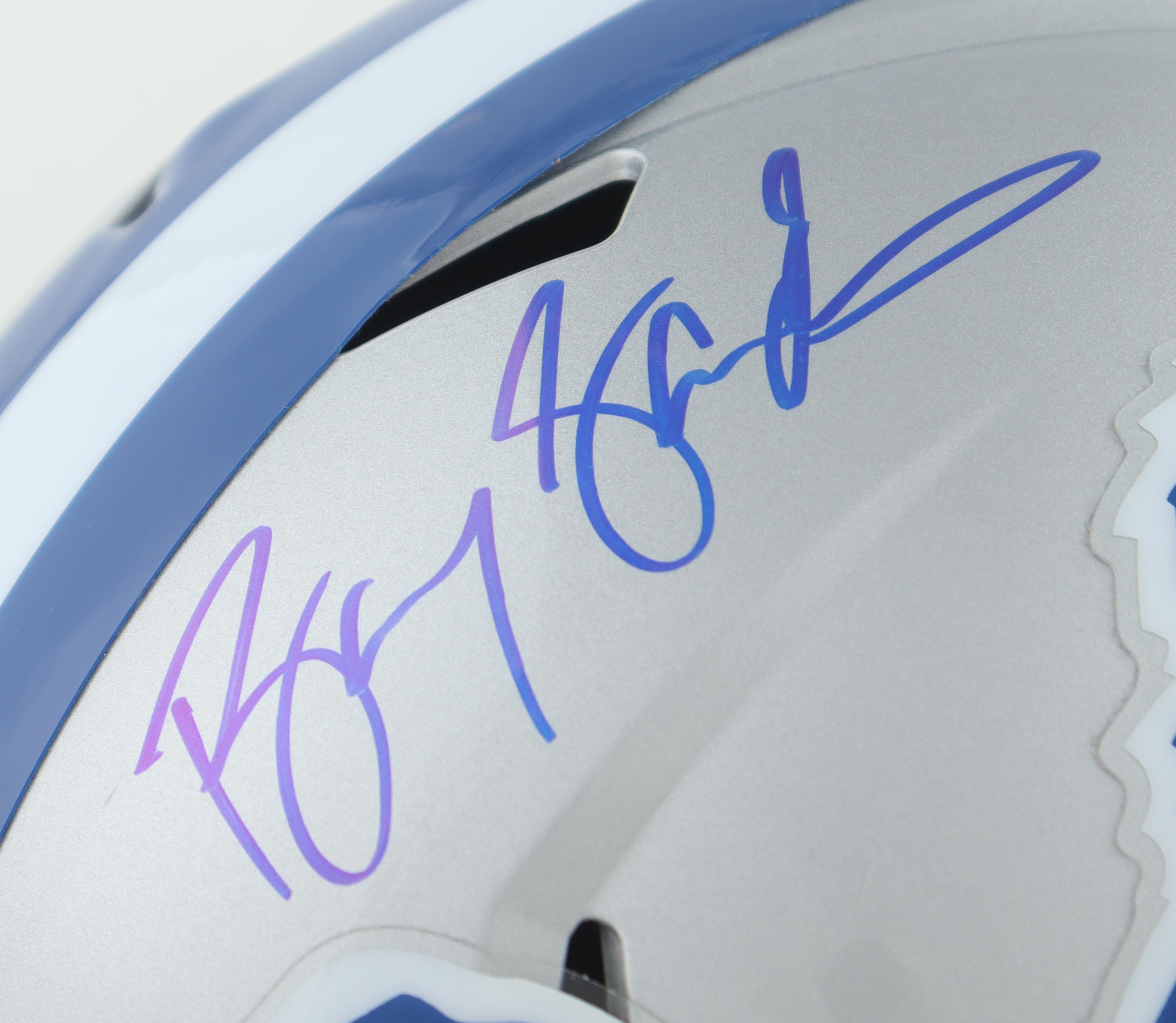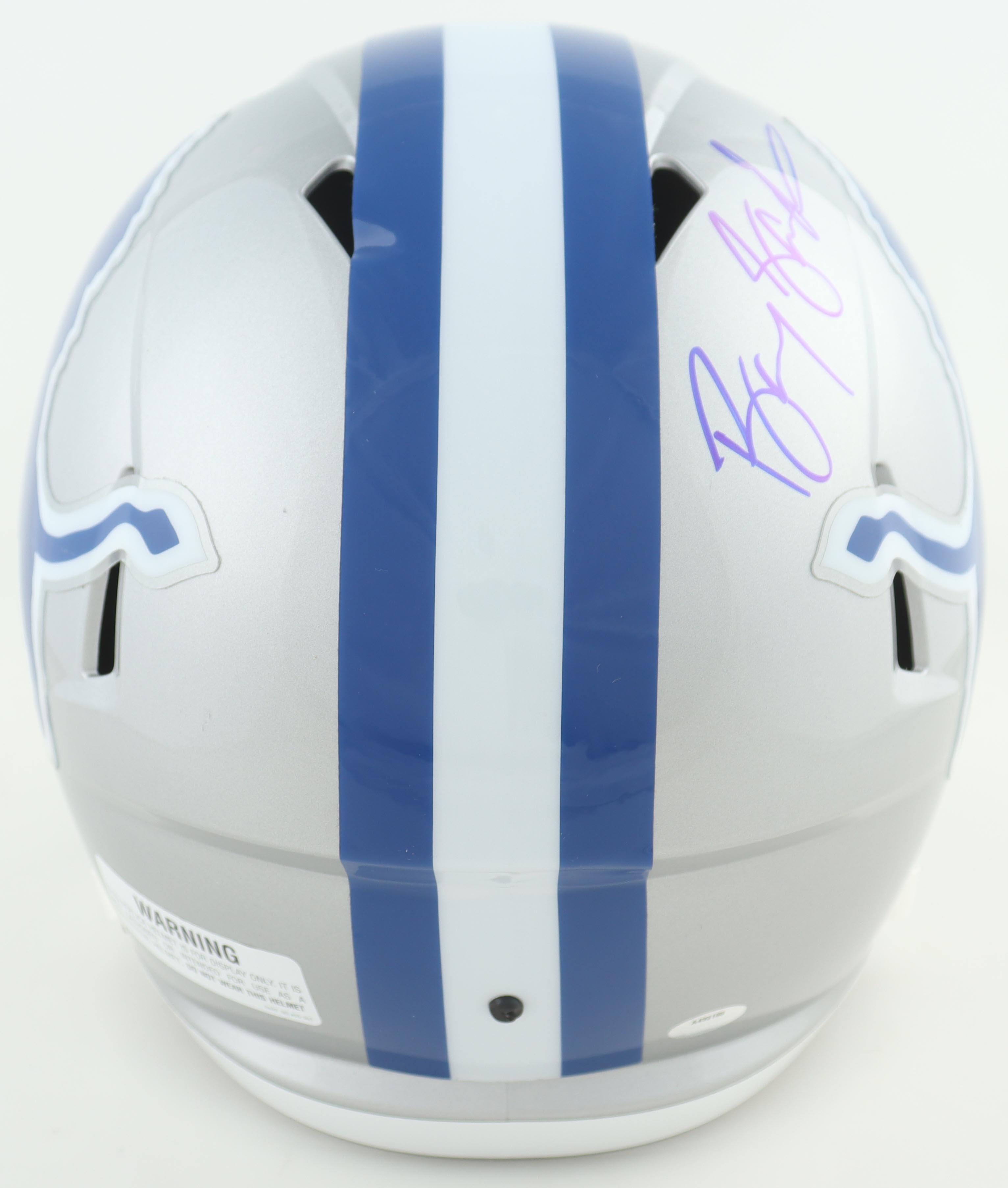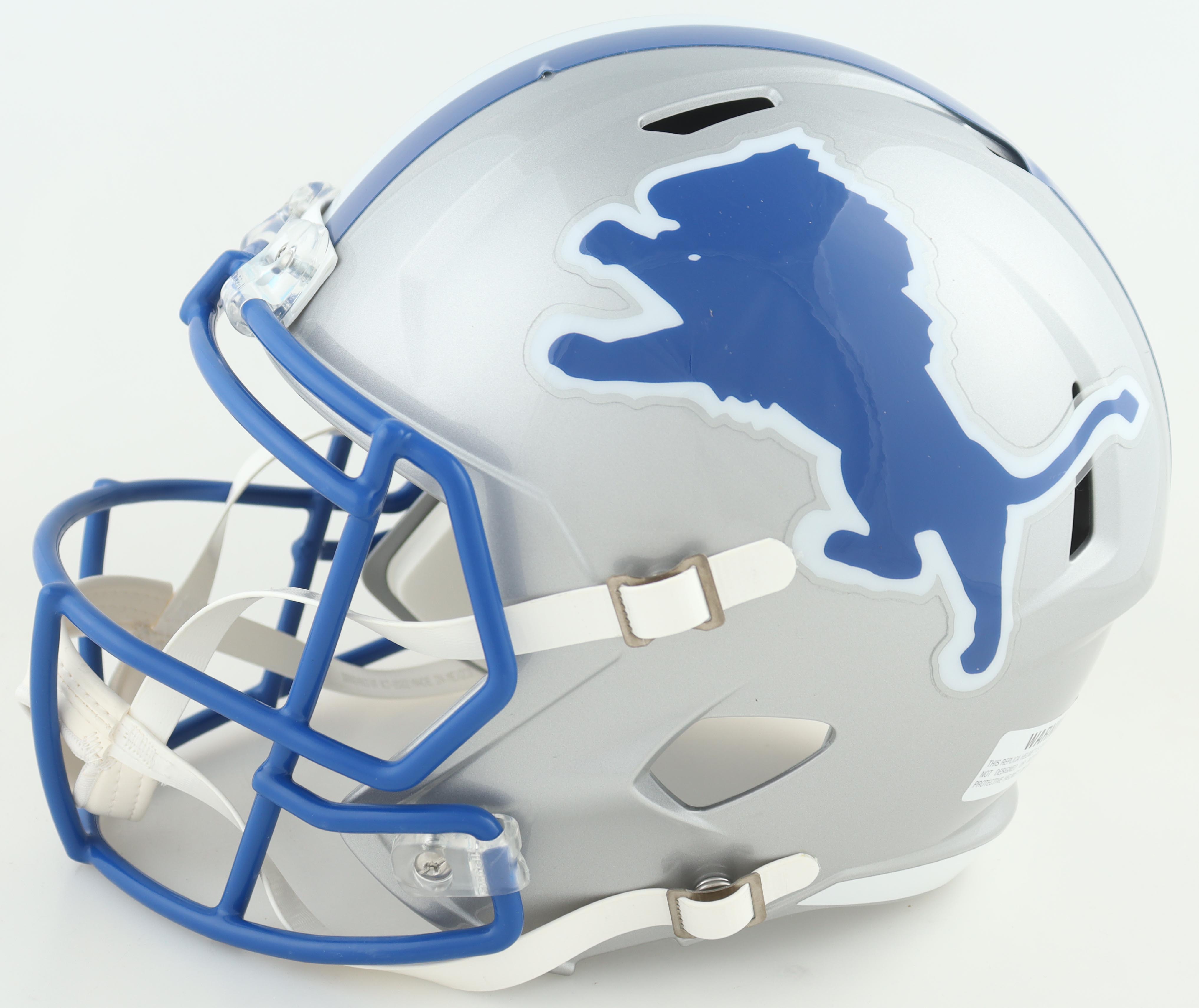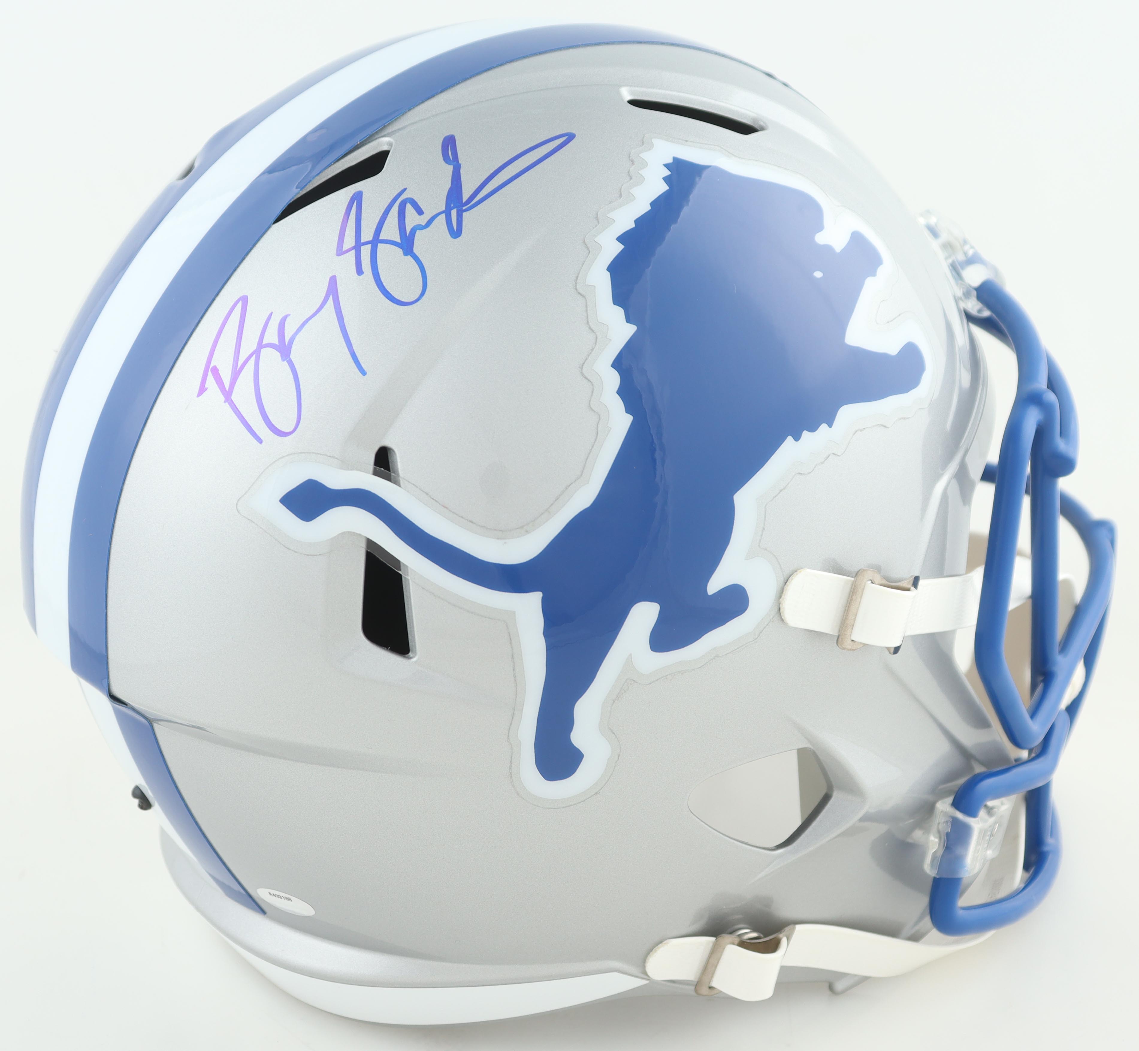 Riddell Detroit Lions full-size replica speed helmet has been hand-signed by Barry Sanders (HOF).