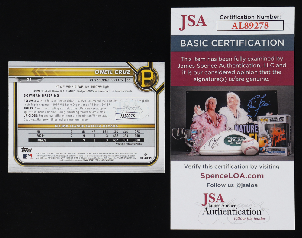 Oneil Cruz Signed 2022 Bowman #51 RC (JSA)