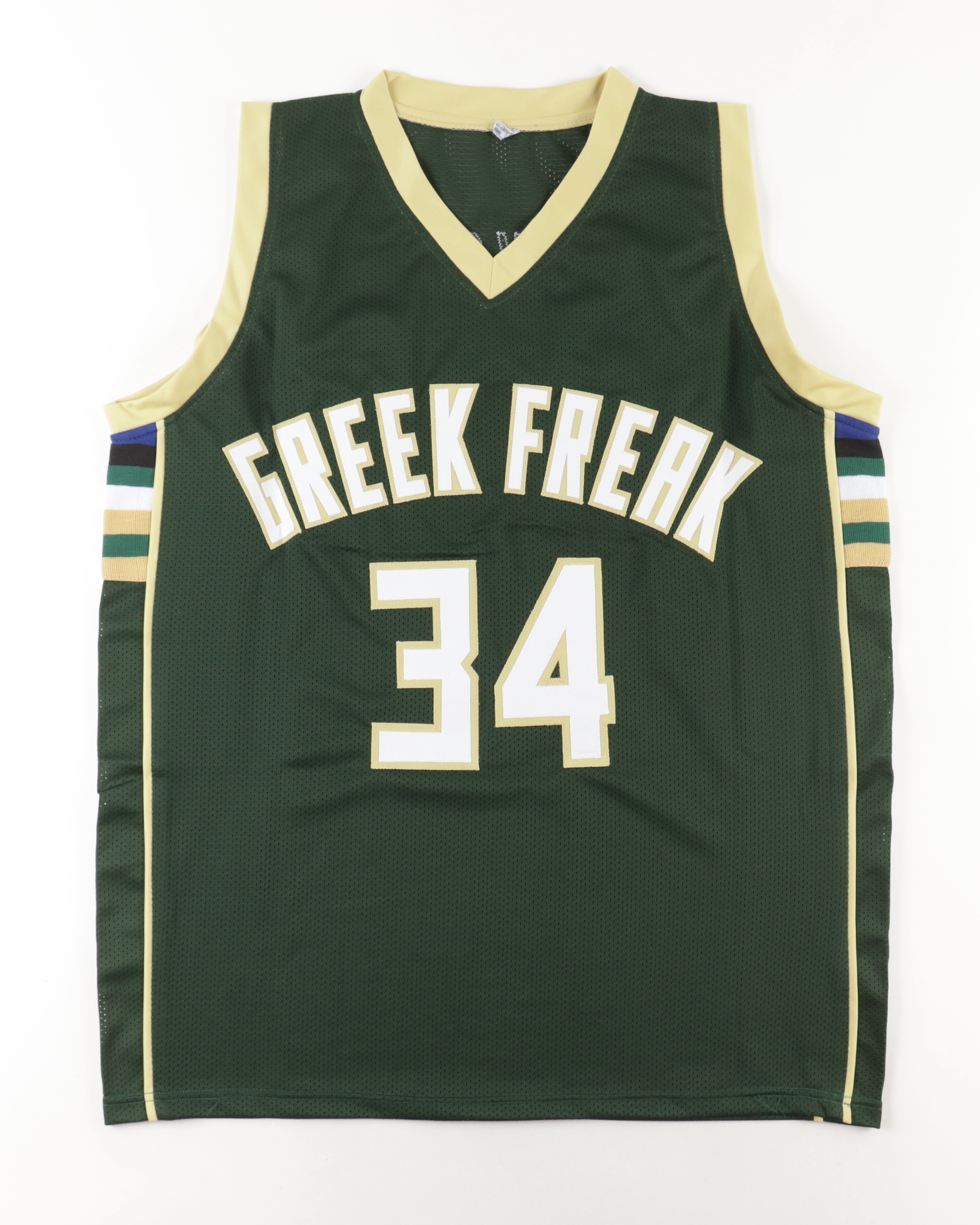 Custom jersey. Everything is sewn on, size XL. Hand-signed by Giannis Antetokounmpo.