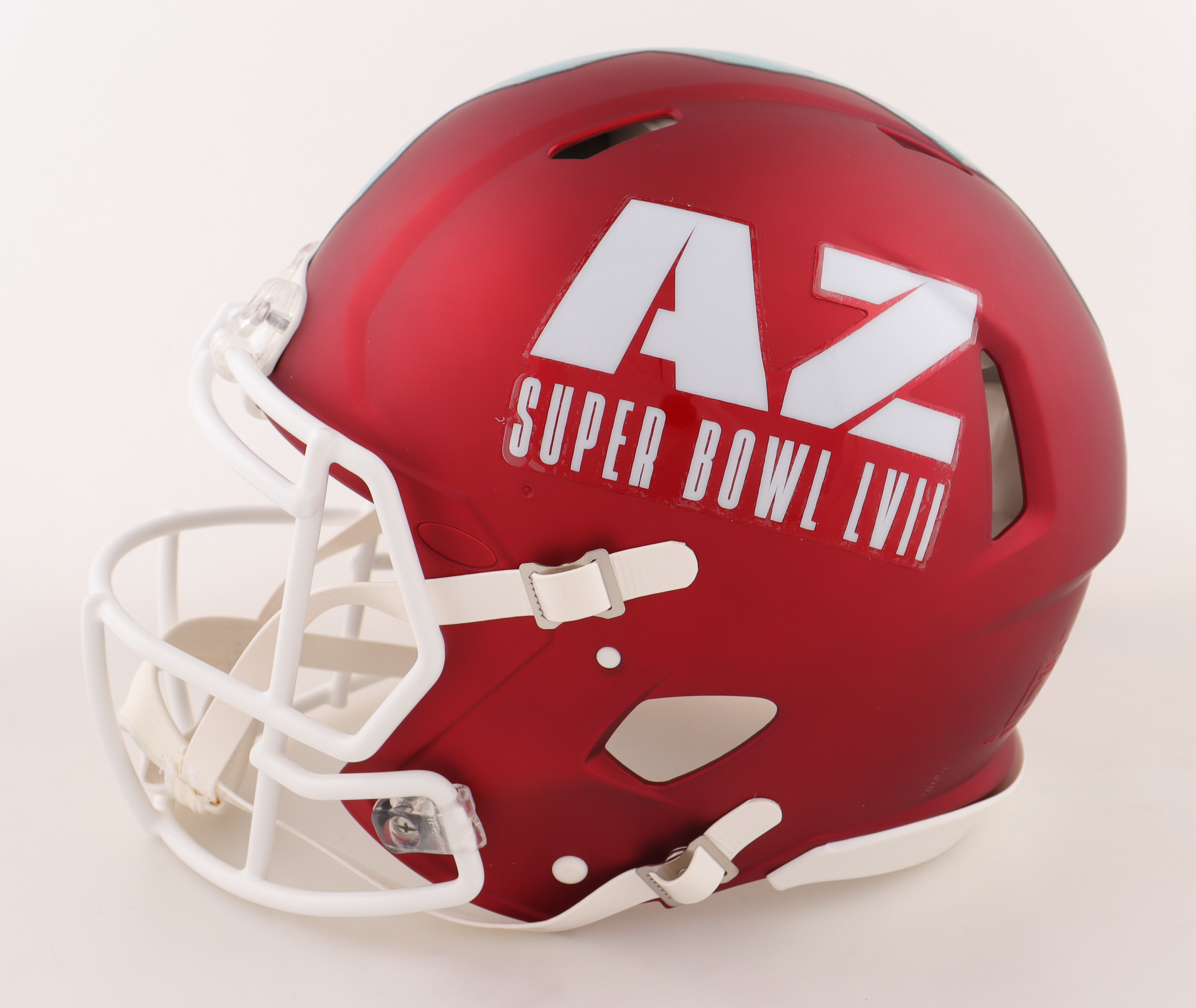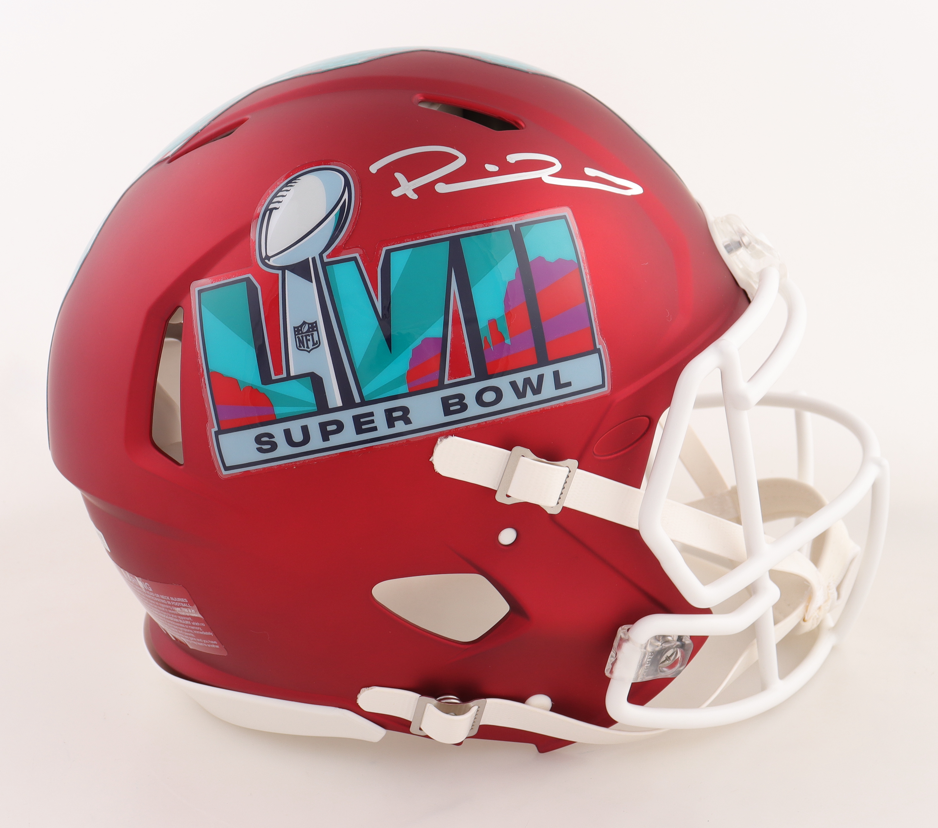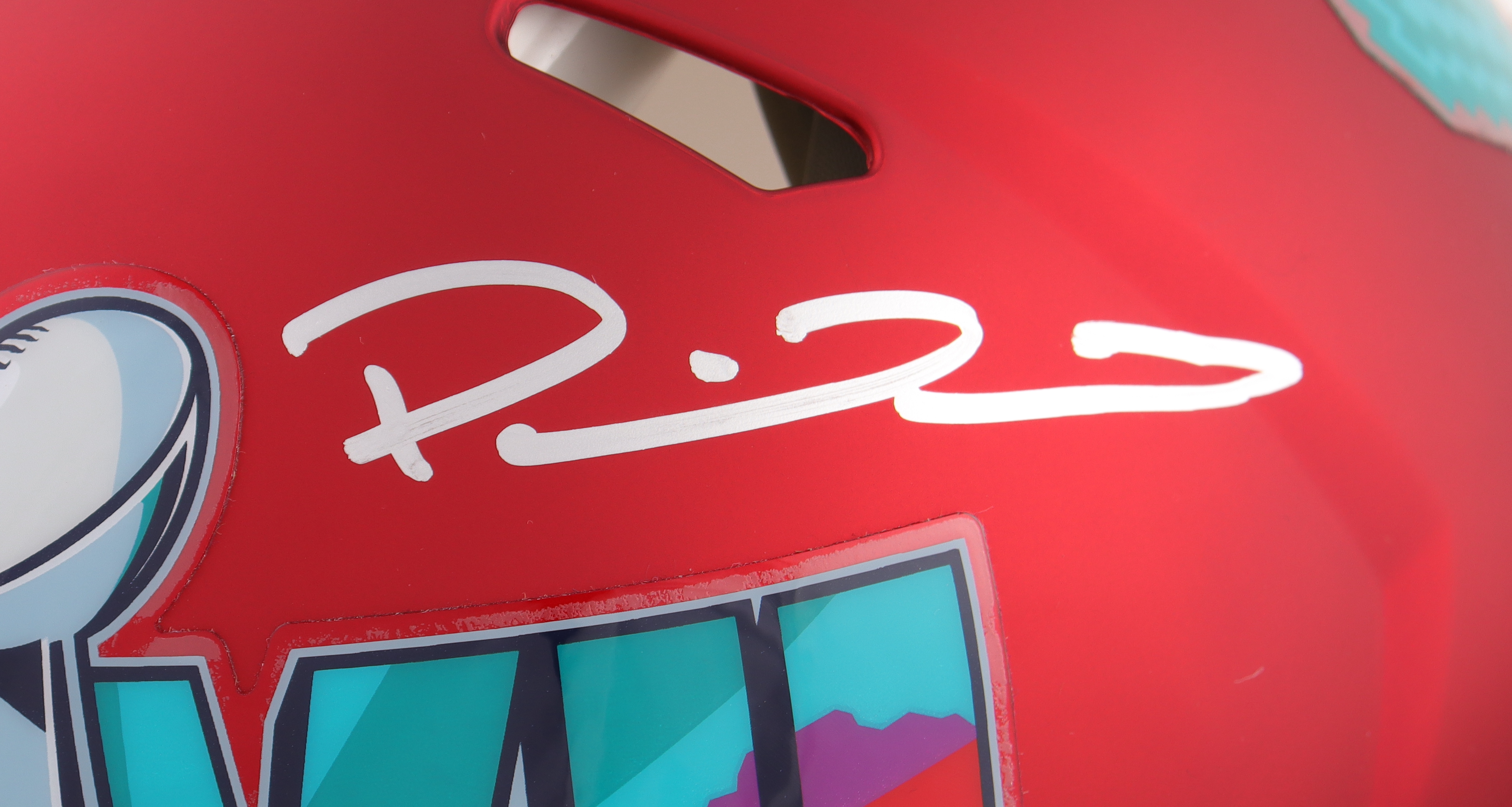 Riddell Kansas City Chiefs Super Bowl LVII champions logo full-size authentic speed helmet. Has been hand-signed by Patrick Mahomes.