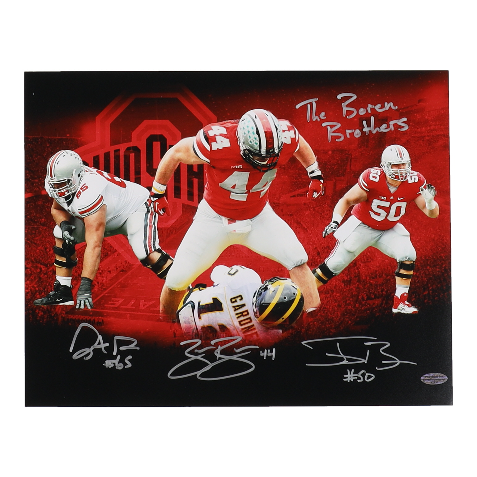 Zach Boren, Justin Boren & Jacoby Boren Signed 11x14 Ohio State Buckeyes Photo Inscribed "Boren Brothers" (Playball Ink)