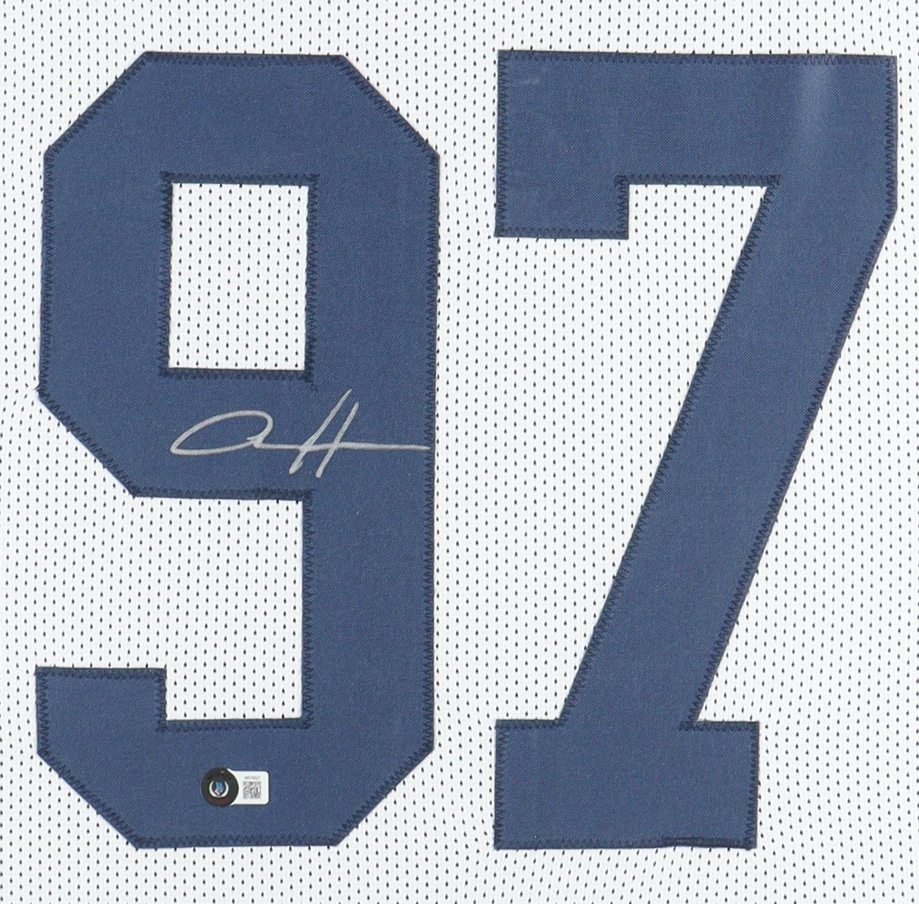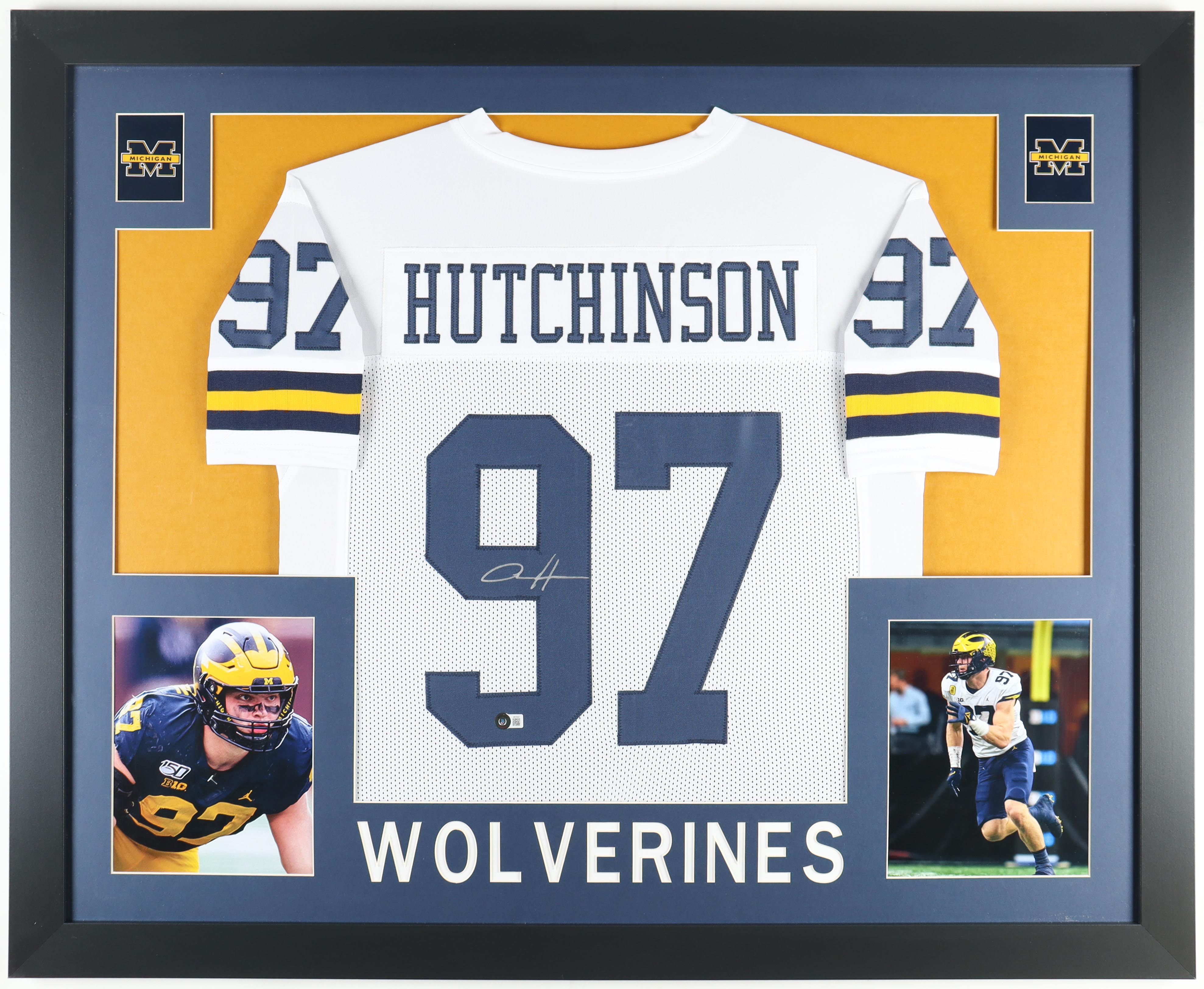 Custom frame measures approximately 35.5" x 43.5" in size and features a jersey hand-signed by Aidan Hutchinson.