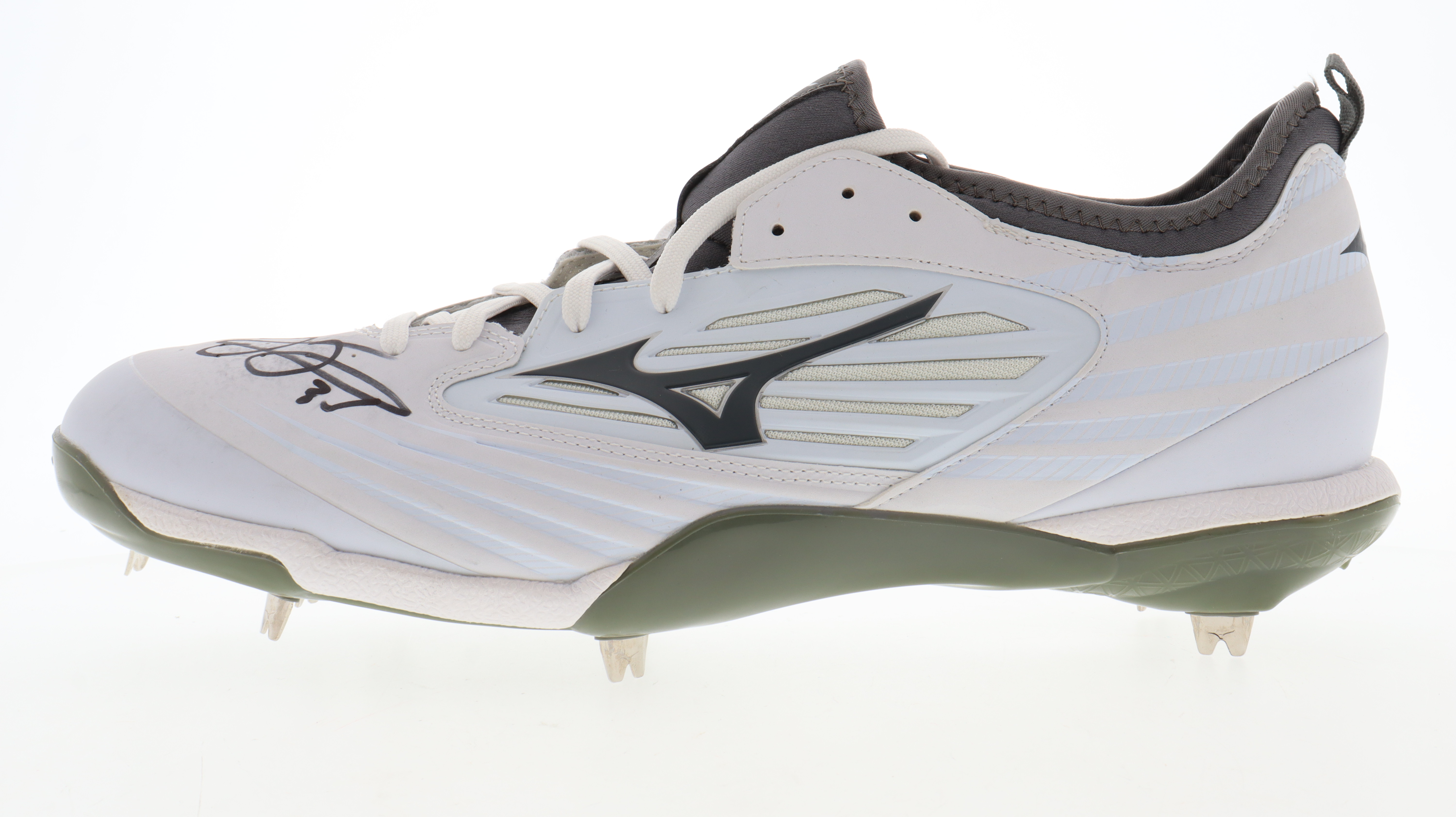 Mizuno left baseball cleat, size 16. Hand-signed by Frank Thomas (Chicago White Sox, HOF).