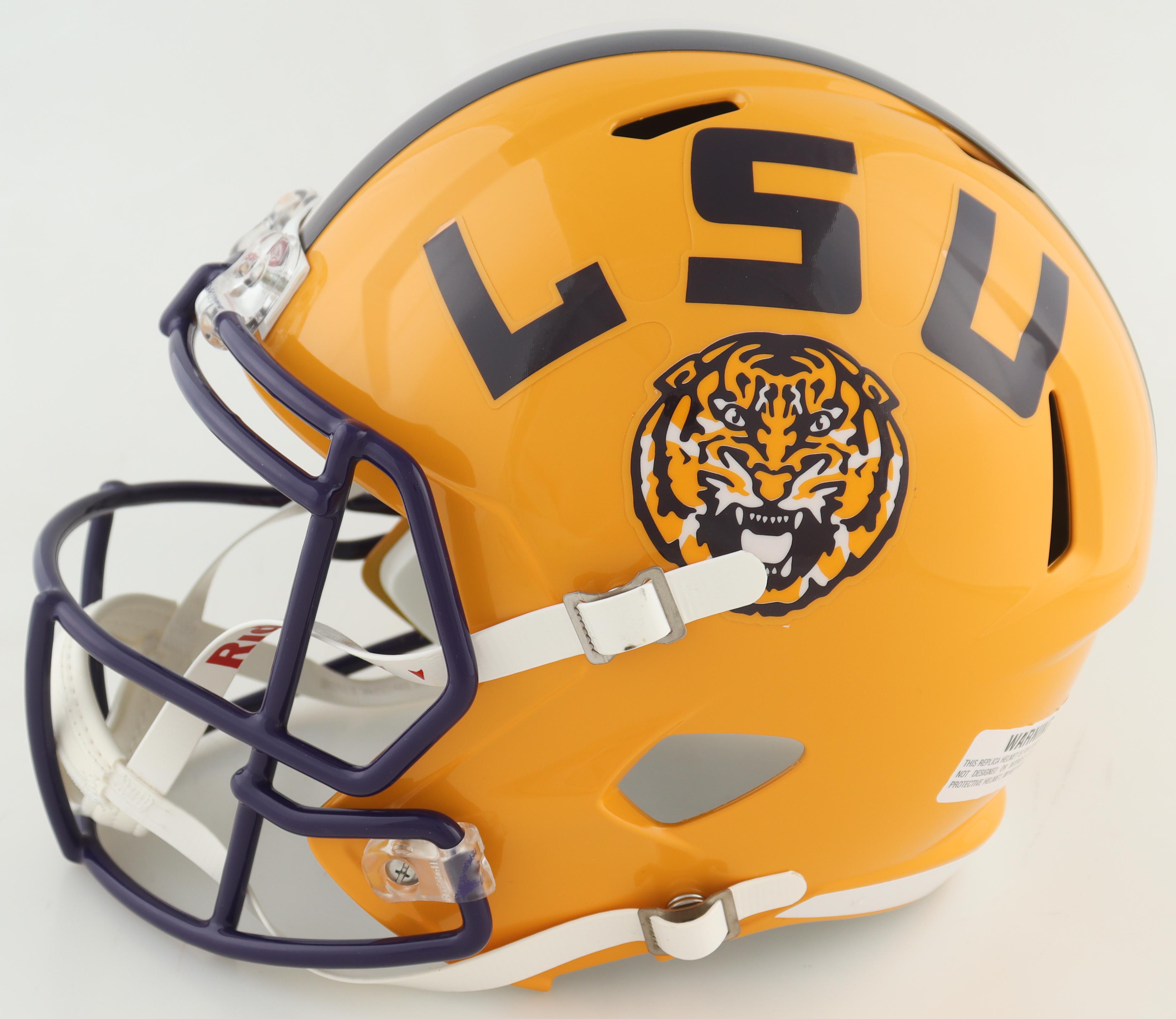Riddell LSU Tigers full-size Replica speed helmet. Hand-signed and inscribed by Dwayne Bowe.