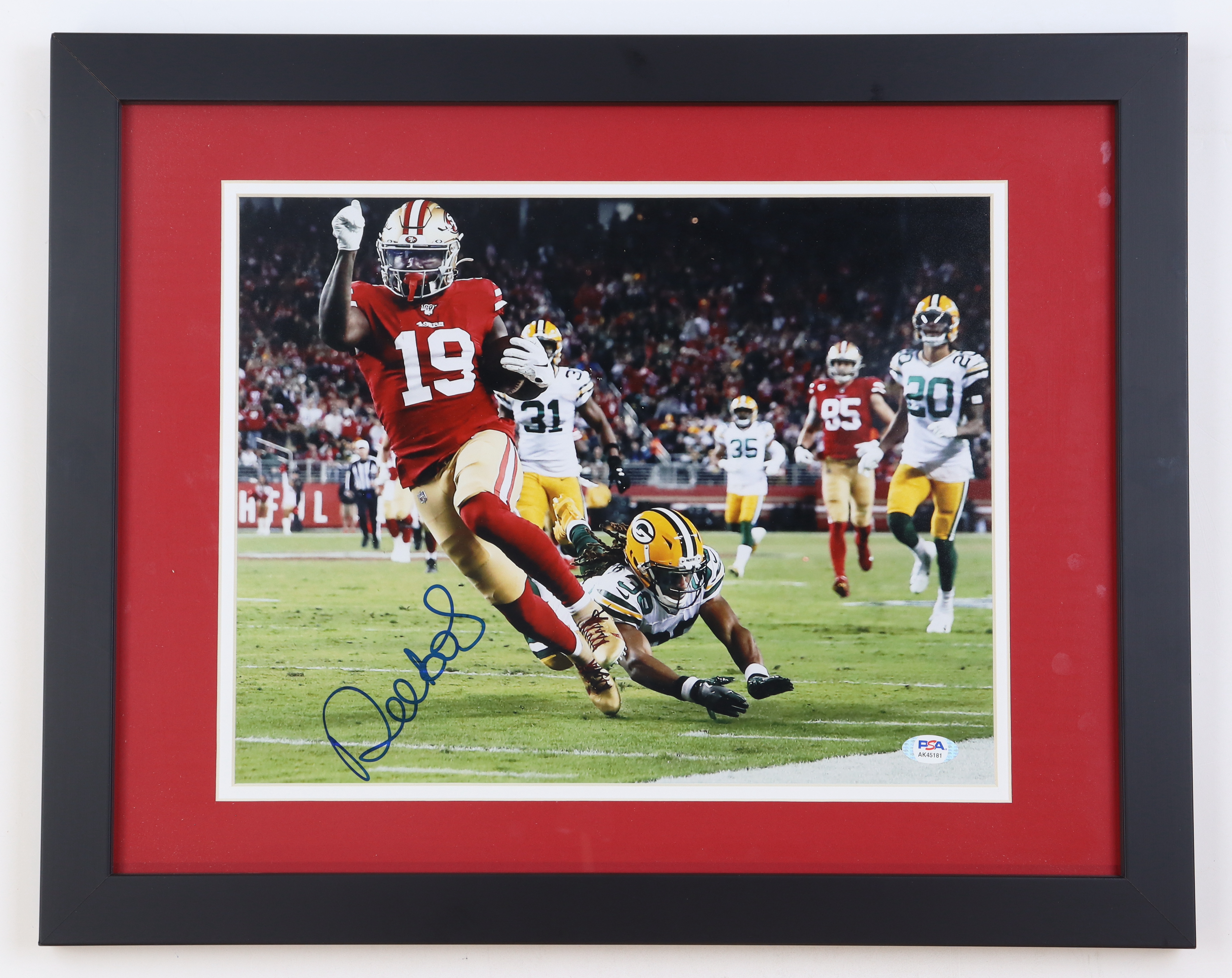 Custom frame measures approximately 16" x 20" in size and features a photo that has been hand-signed by Deebo Samuel (San Francisco 49ers).
