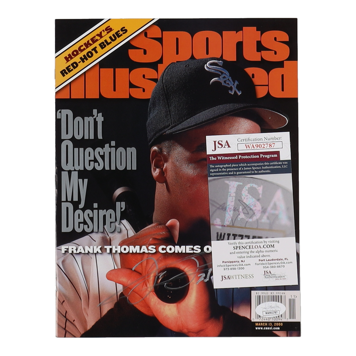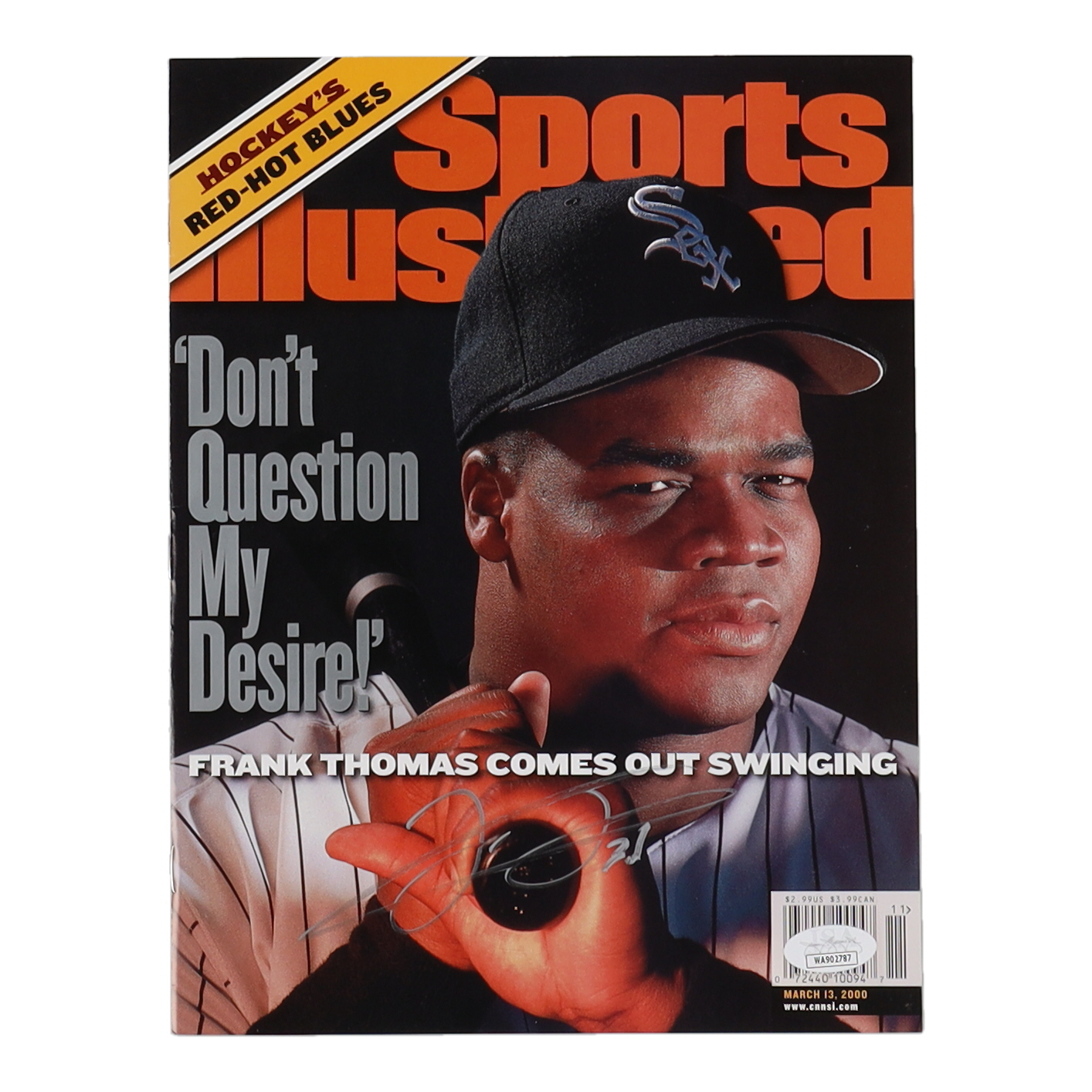 March 13, 2000 Sports Illustrated magazine has been hand-signed by Frank Thomas (Chicago White Sox, HOF).
