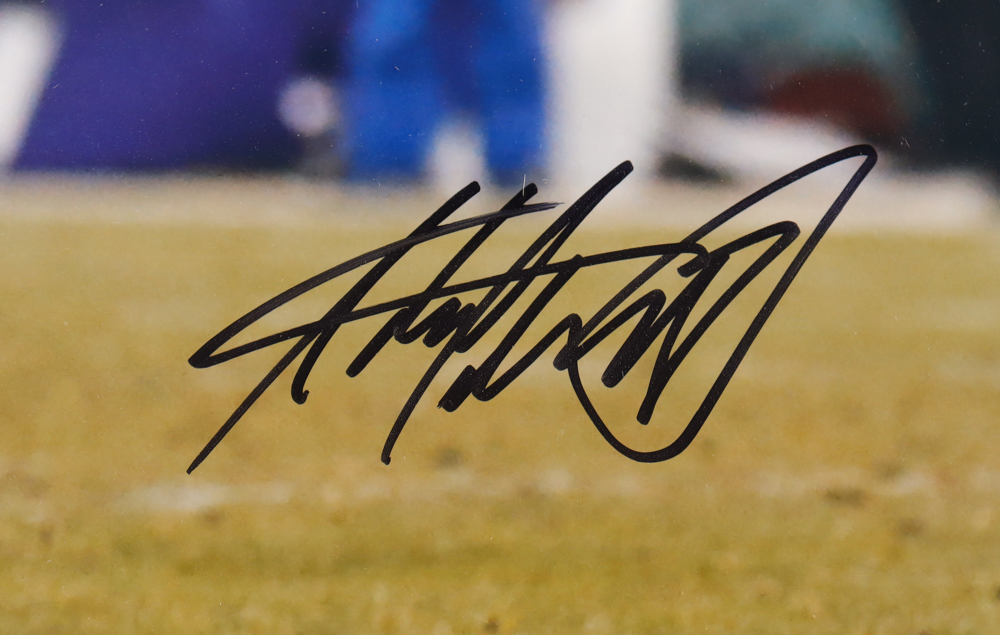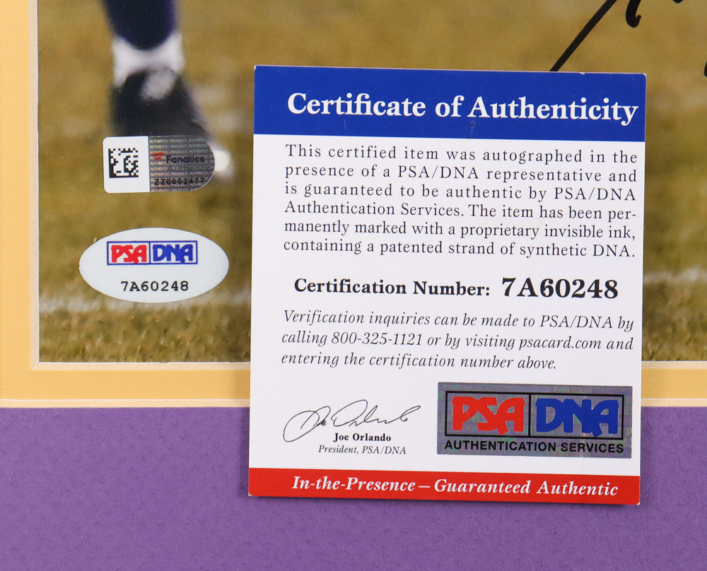 Custom frame measures 24" x 27" in size and features a photo that has been hand-signed by Adrian Peterson (Minnesota Vikings).