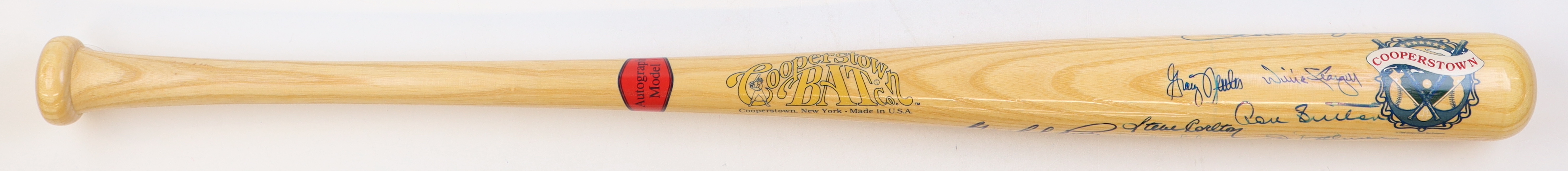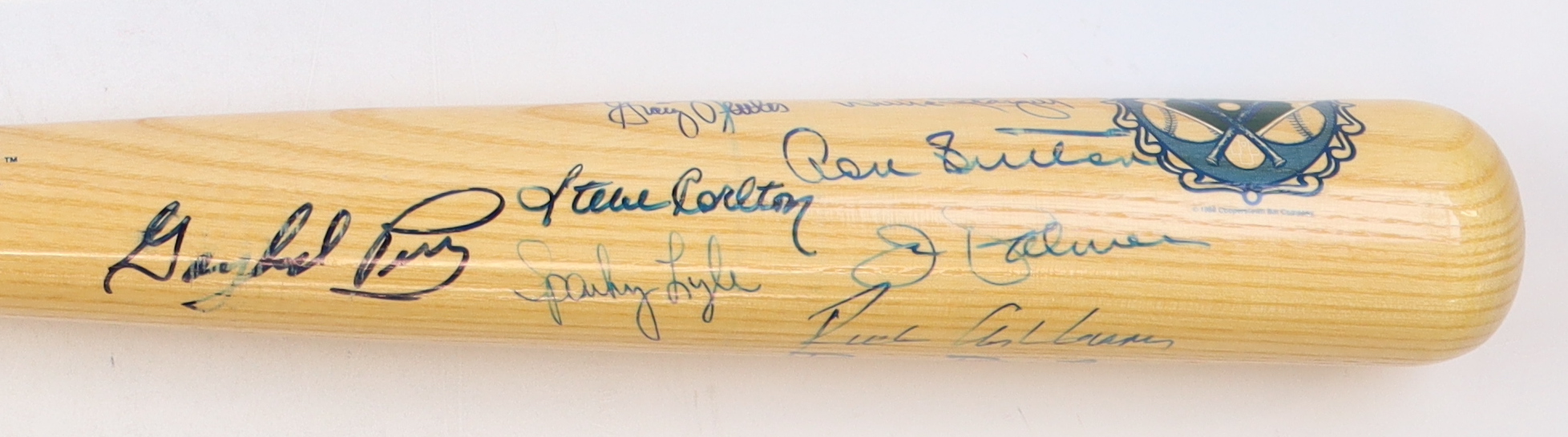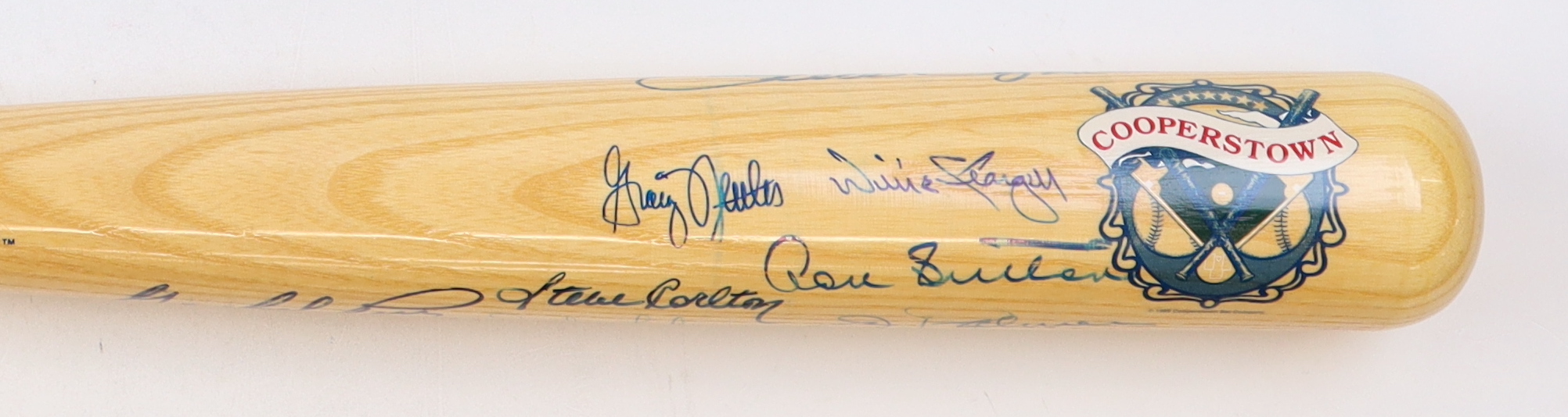 Cooperstown Autograph Model baseball bat has been hand-signed by (10) with Willie Stargell, Gaylord Perry, Steve Carlton, Jim Palmer, Richie Ashburn, Robin Roberts, Don Sutton and (3) others.